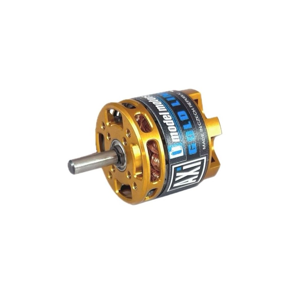 Střídavý elektromotor s rotačním pláštěm nové generace pro modely trenér do 1700g, akro 1300g, 3D 1000g, větroň 1900g, napájení Lixx 3-4s, hřídel 5 mm, regulátor 30-40A. Včetně kleštinového unašeče pro pevnou vrtuli a sady pro zadní montáž.