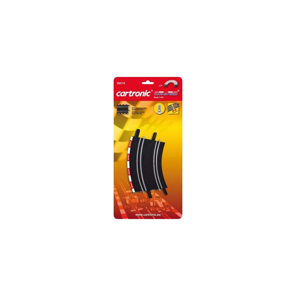 Balíček obsahuje 2ks lopingu úhel 45 ° v měřítku 1:43 pro rozšíření automobilové závodní dráhy Cartronic Car-Speed. Kolejnice jsou vyrobeny z vysoce kvalitního ABS materiálu s hotovými elektrickými vodiči a jsou potištěny atraktivními červeno-bílými okrajovými proužky.