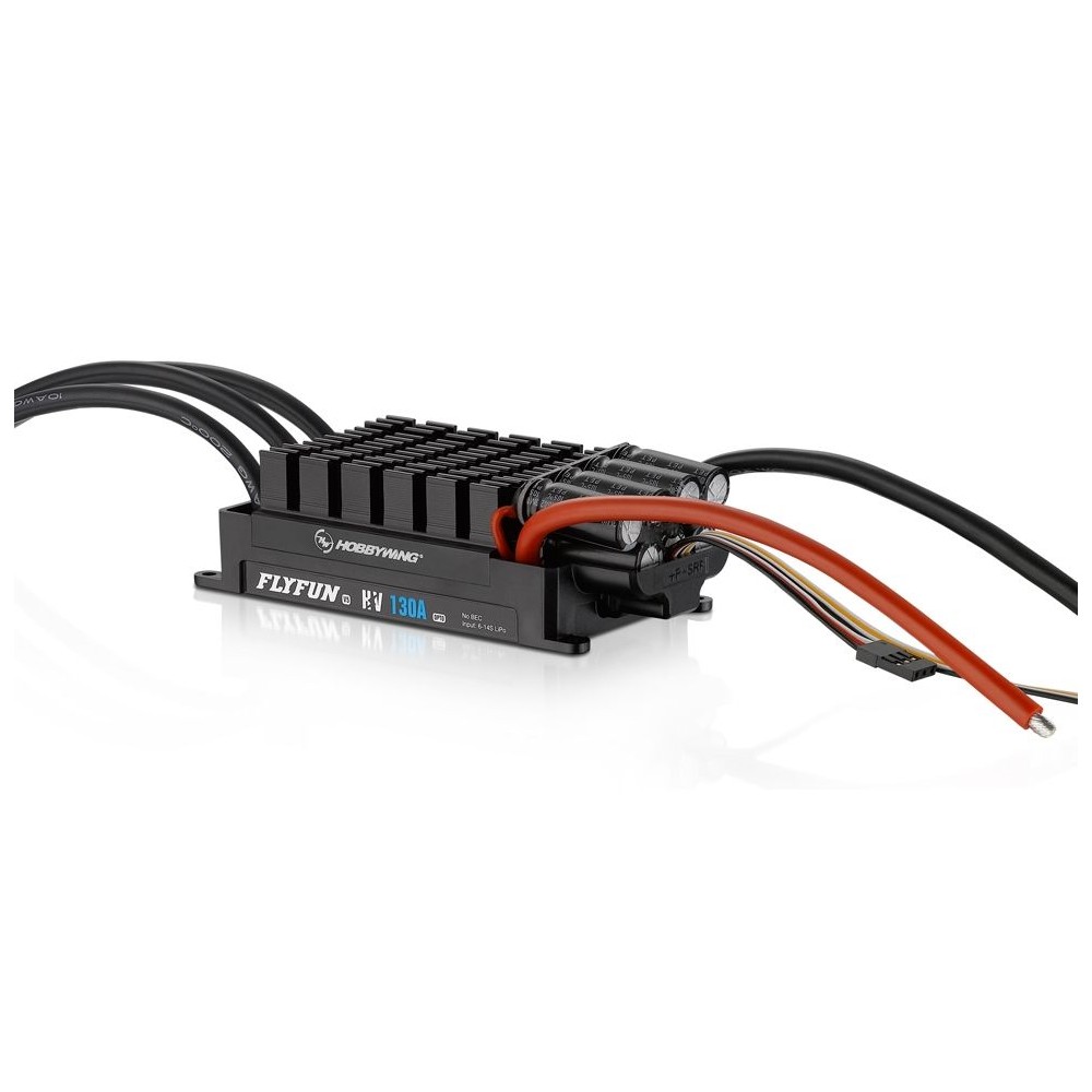 Střední řada regulátorů firmy Hobbywing pro modely letadel. Neobsahuje interní BEC. Trvalý proud 130A, špičkový 160A. Napájení 6-14S LiPol. Hmotnost 221,5g. Rozměry 110x50,3x33,2mm.