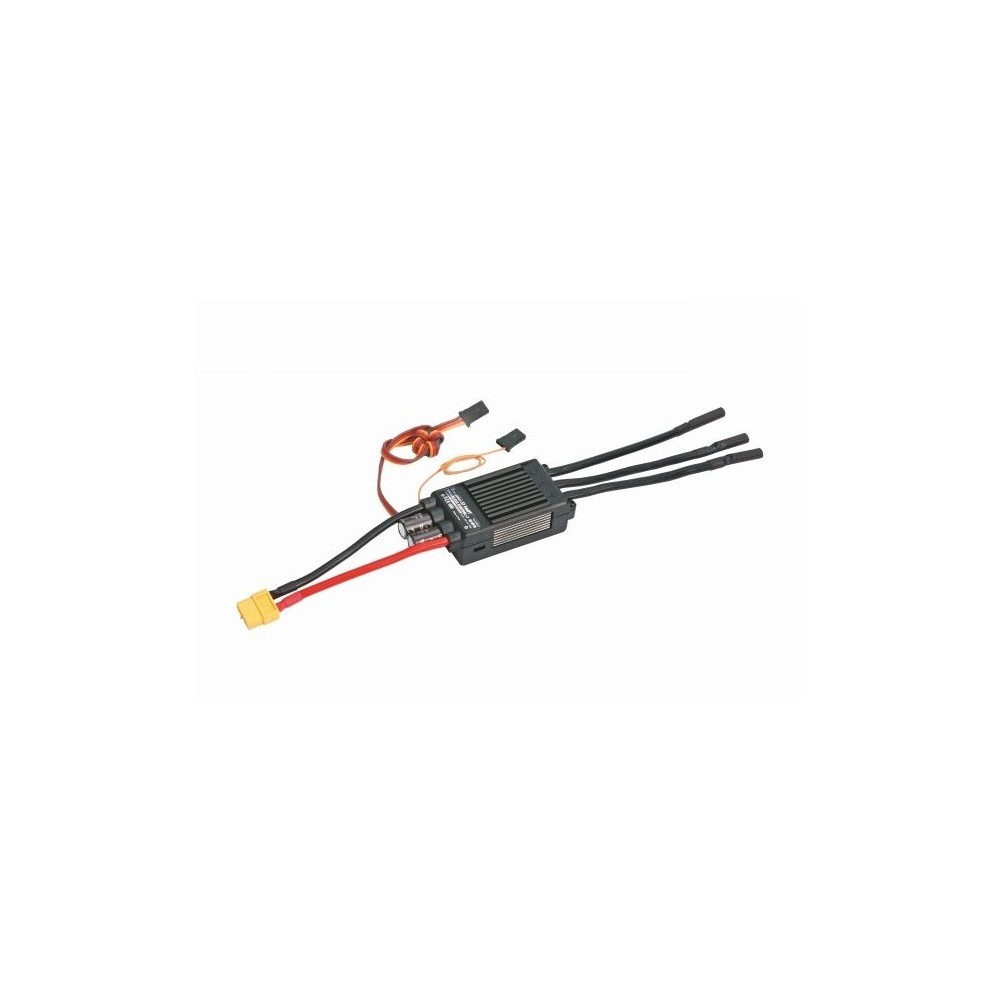 Nová řada univerzálních střídavých opto regulátorů otáček s telemetrickým výstupem systému HoTT. Regulátory mají přepínatelné programy se širokou škálou nastavitelných funkcí pro modely letadel, vrtulníků (s governorem), aut (jednosměrné s brzdou, obousměrné) a lodí (jednosněrné/obousměrné). Programování se provádí prostřednictvím telemetrického spojení systému HoTT přímo na displeji vysílače (vysílače HoTT s hlasovým výstupem telemetrie) nebo na SMART-BOXu v případě starších vysílačů s moduly HoTT. Z regulátoru jsou naopak na displej vysílače resp. SMART-BOXu přenášeny údaje o okamžitém proudu, napájecím napětí, teplotě regulátoru, otáčkách motoru a proteklém elektrickém náboji. Můžete také nastavit prahové úrovně pro výstražná hlášení - např. min. napájecí napětí, max. teplota regulátoru, max. proud, proteklý elektrický náboj atd.. Regulátory jsou vybaveny výstupem pro připojení senzoru motoru a externího větráku, vč. silového konektoru XT60 a konektory Gold 4mm pro připojení k motoru.