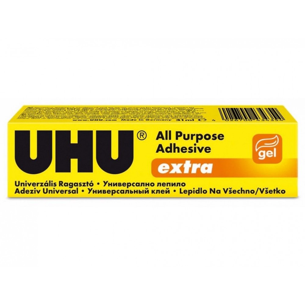Lepí porcelán, dřevo, kovy, sklo, keramika, plexisklo, plsť, kůže, korek, textil, kartón, papír – UHU univerzální lepidlo lepí prostě všechno. Nevhodné na pěnový polystyren, PP a PE.