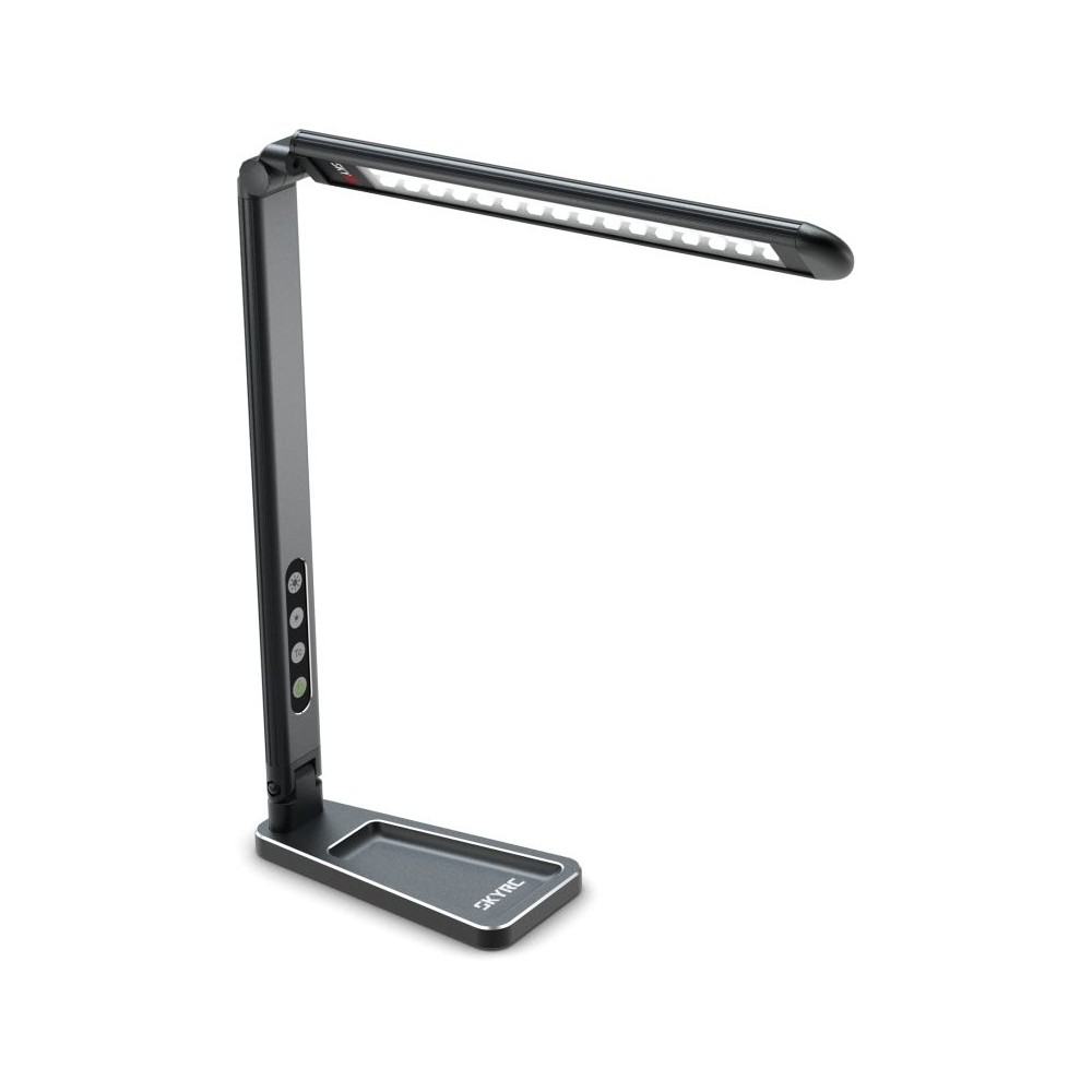 Skládací LED lampička pro práci v depu s odkládacím prostorem na šroubky. Tři barevné teploty a šest úrovní intenzity světla přepínané tlačítky. Napájení 6-15V, příkon max. 11W. Napájecí kabel se 4 mm banánky a USB. Včetně textilního pouzdra.