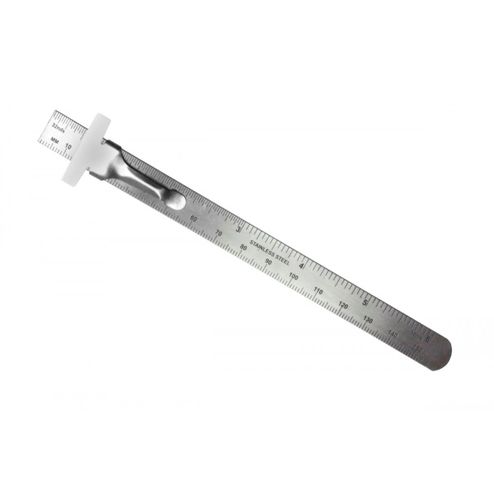 15cm/6" ocelové pravítko kalibrované v mm i palcích s posuvkou pro měření hloubky nebo okamžitý převod rozměrů z mm na palce a naopak. Nepostradatelná pomůcka pro stavitele amerických stavebnic!