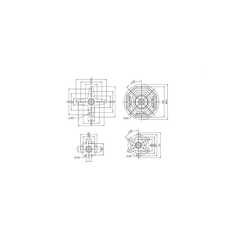 pro FUTABA, SAVOX, SRT, HD POWER a podobné serva. Offset: 10,8mm, Rozměr od středu k první díře:...