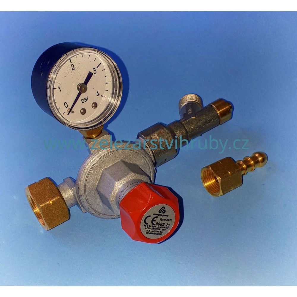 MEVA Regulátor tlaku PB 0,5-4bar a průtokem 14kg/hod. Redukční ventil s manometrem (budíkem) a...