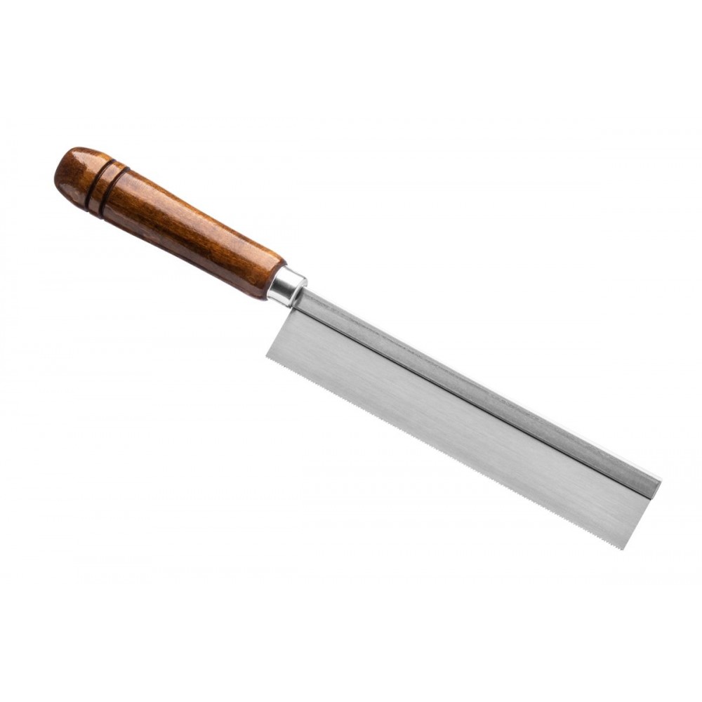 Střední truhlářská pilka ZONA s dřevěnou rukojetí s listem 165x22mm o tlouštce 0,38mm, 24zubů/palec. Zuby orientované pro záběr při tažení k sobě.