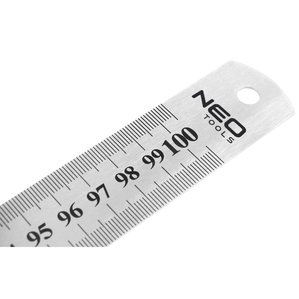 Lineární měřidlo 100 cm, nerez 72-210 od společnosti NEO je 100 cm dlouhý nástroj z odolné nerezové oceli. Má jasné označení a otvor pro snadné skladování.