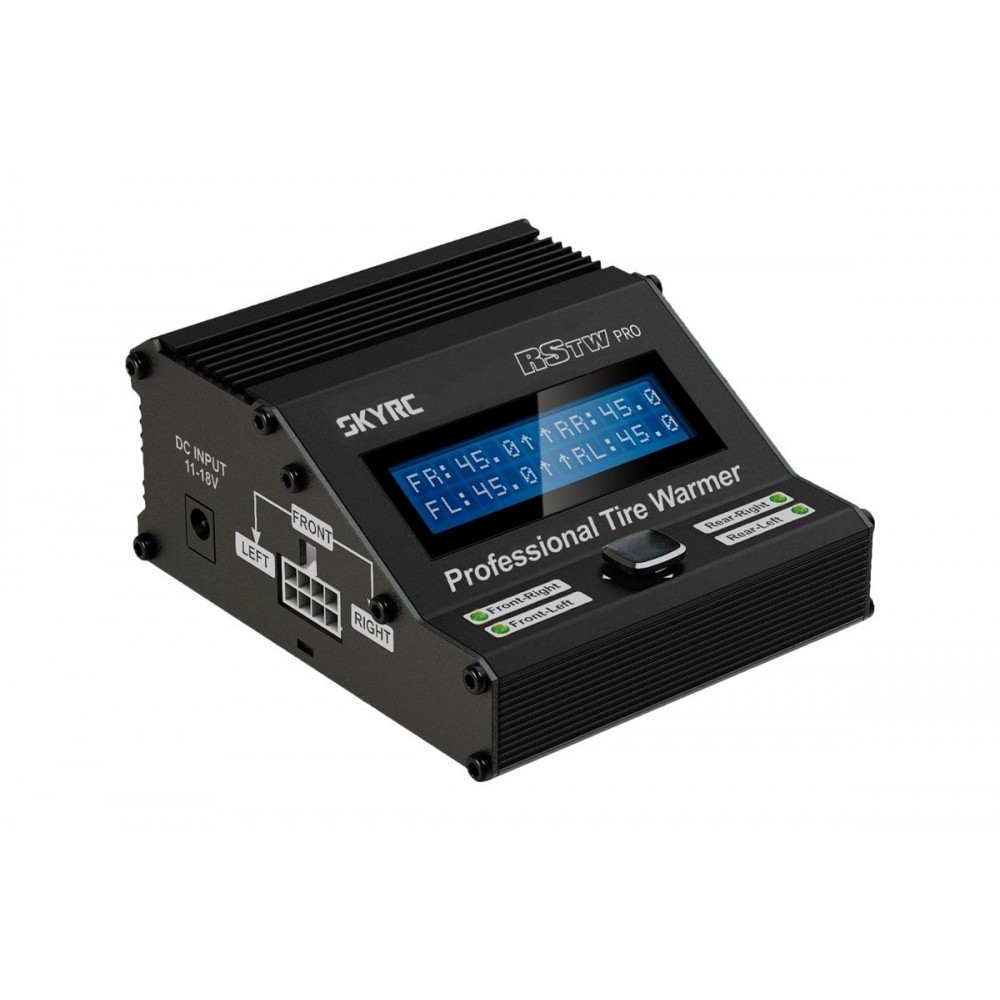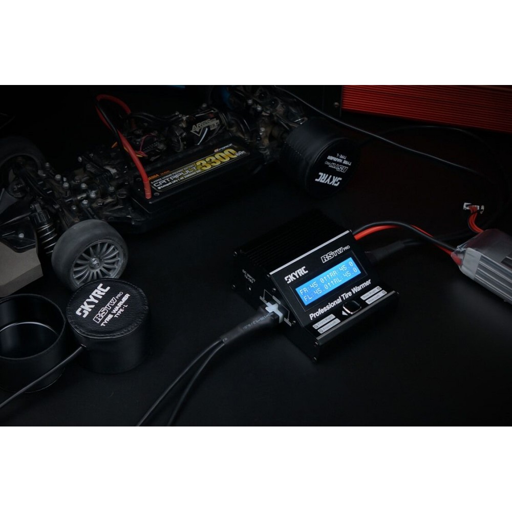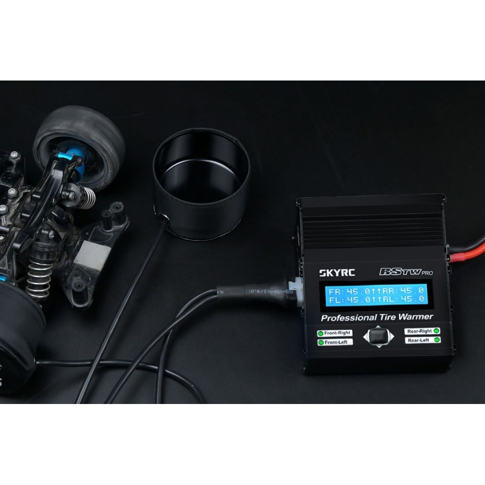 Kompaktní inteligentní předehřívač pneumatik pro RC silniční auta 1:10 vám umožní – tak jako jezdcům „velké“ Formule 1 - vyrazit do závodu s pneumatikami zahřátými na optimální teplotu hned od startu! Auto postavíte na stojánek, na kola nasadíte předehřívací návleky a spustíte zahřívací program – a je to! Samozřejmě, se vším si můžete vyhrát ještě více, předehřívat ve dvou nebo třech stupních, nanášet různá aditiva...to vše vám předehřívač bez problému umožní.