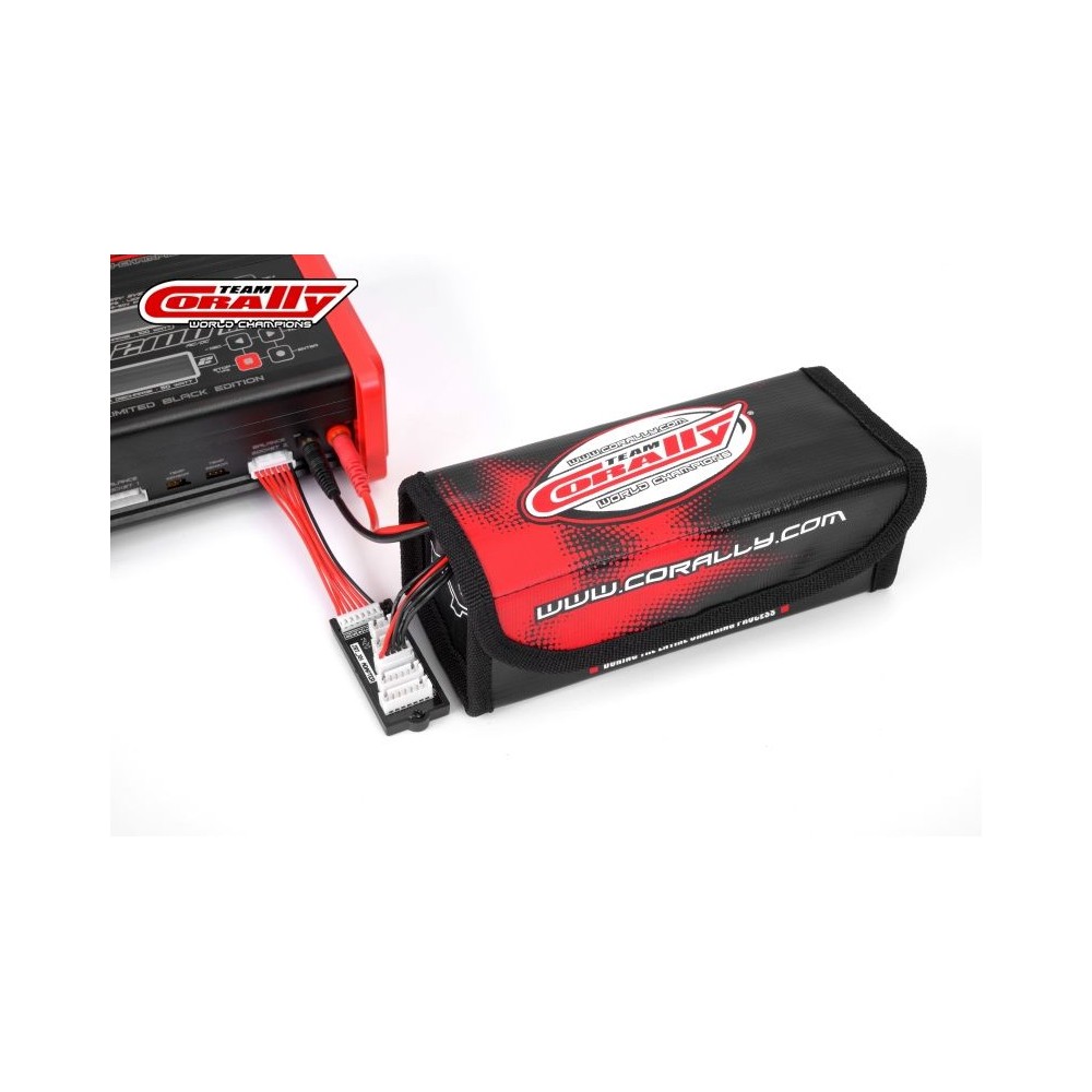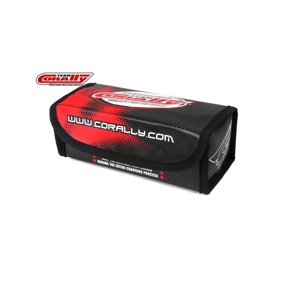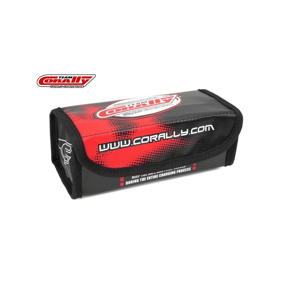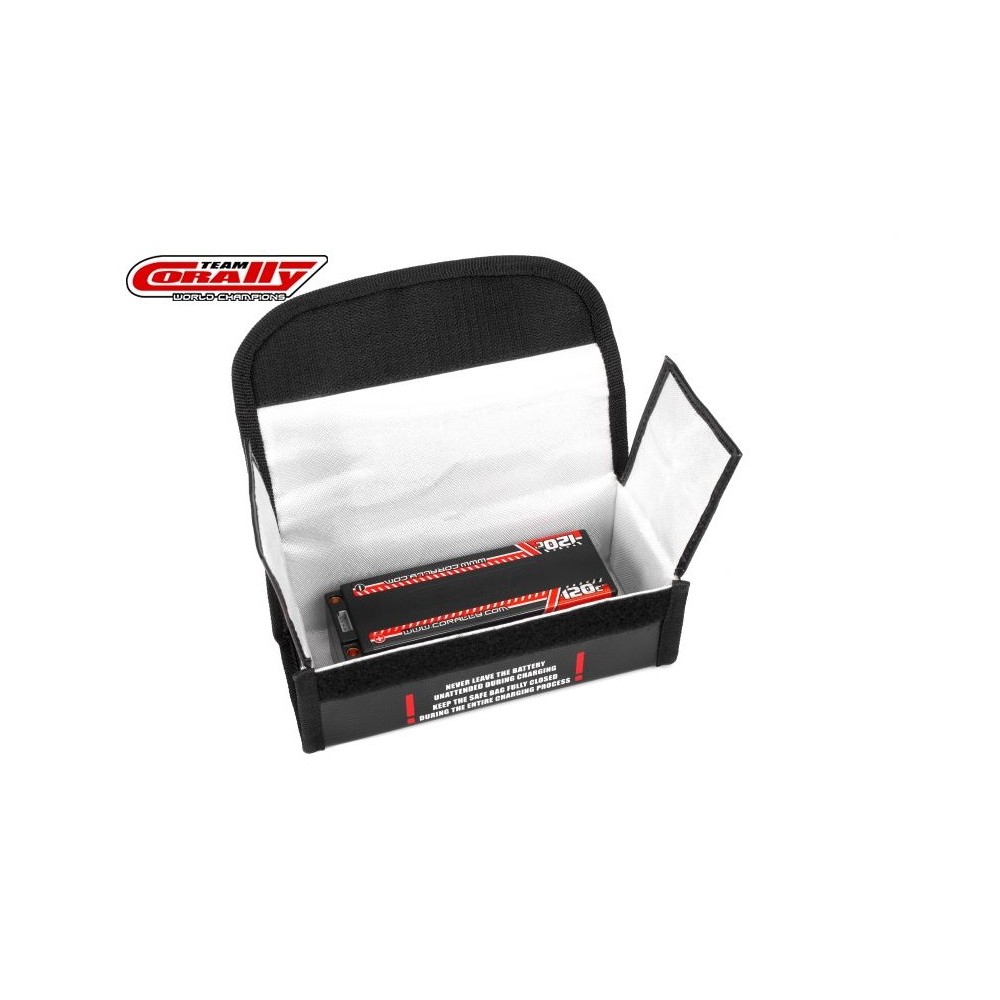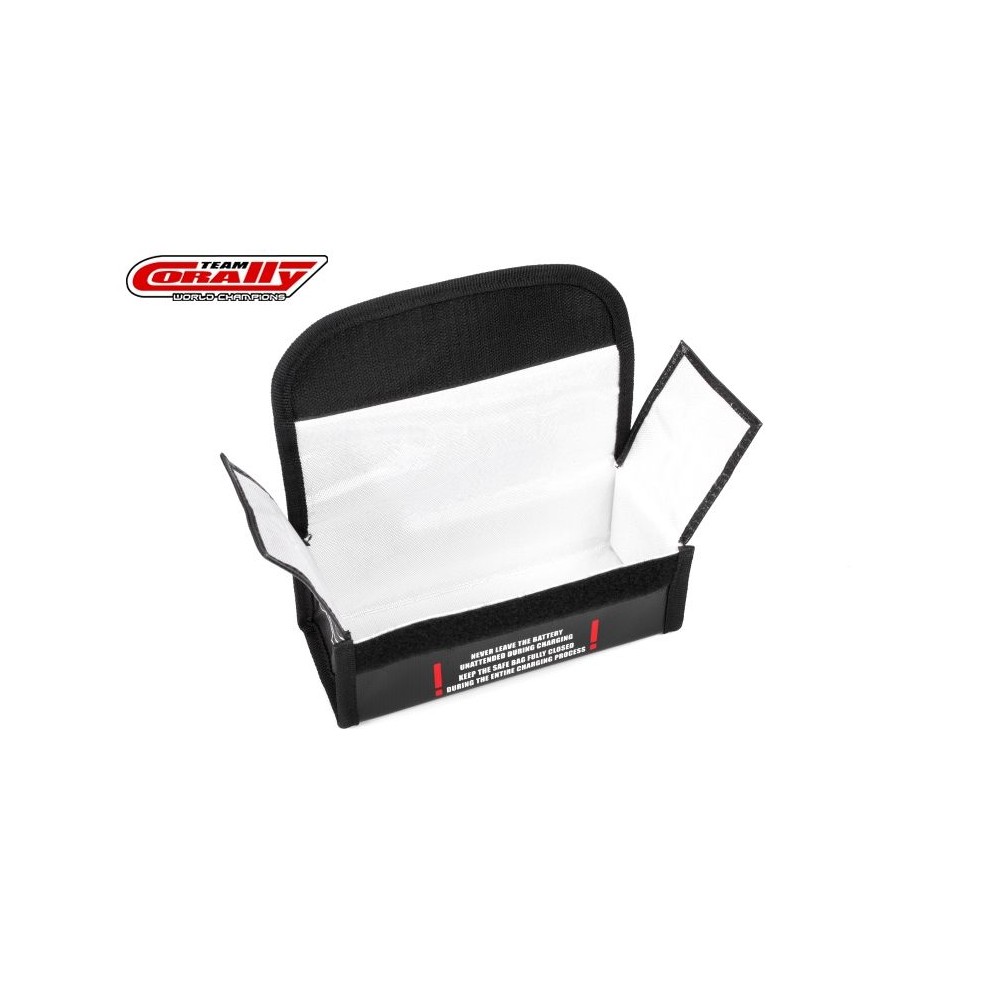 Ochranný obal pro přepravu, uskladnění a nabíjení na závodech dvou LiPo sad. Rozměr je 10x20cm, obal je vyroben z nehořlavé textilie.