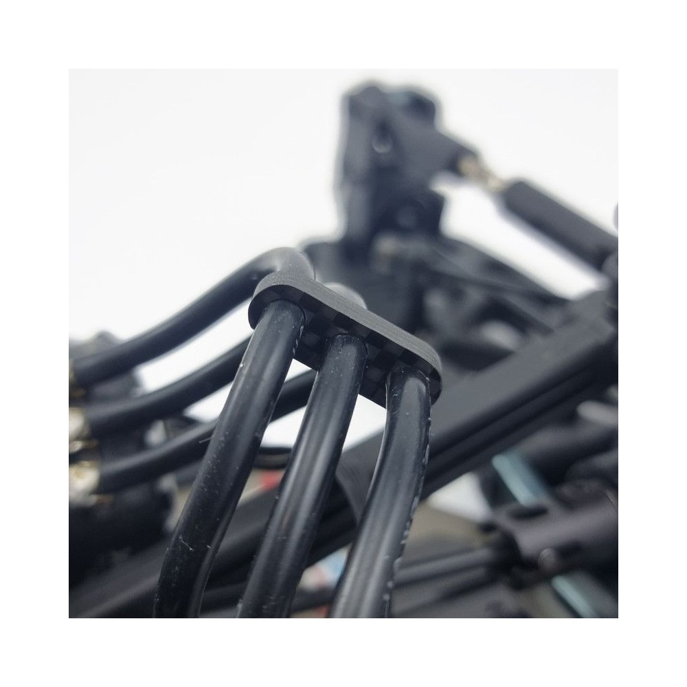 Karbonový organizér kabelů regulátoru od společnosti Ultimate Racing, který má 3 otvory pro použití s 12AWG kabely (UR46210 / UR46209). Je určen k efektivnímu zajištění vodičů, zajišťuje přehledné uspořádání a zabraňuje zamotání nebo zaseknutí kabelů.