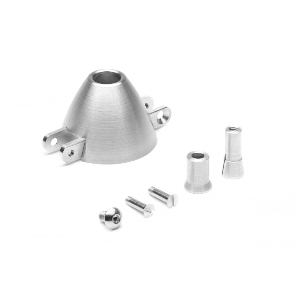 Precizní duralový TURBO kužel pro sklopnou vrtuli o průměru 50 mm s kleštinou 8,0mm, s 3 mm čepy...