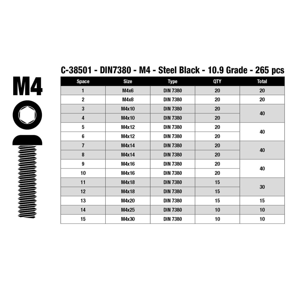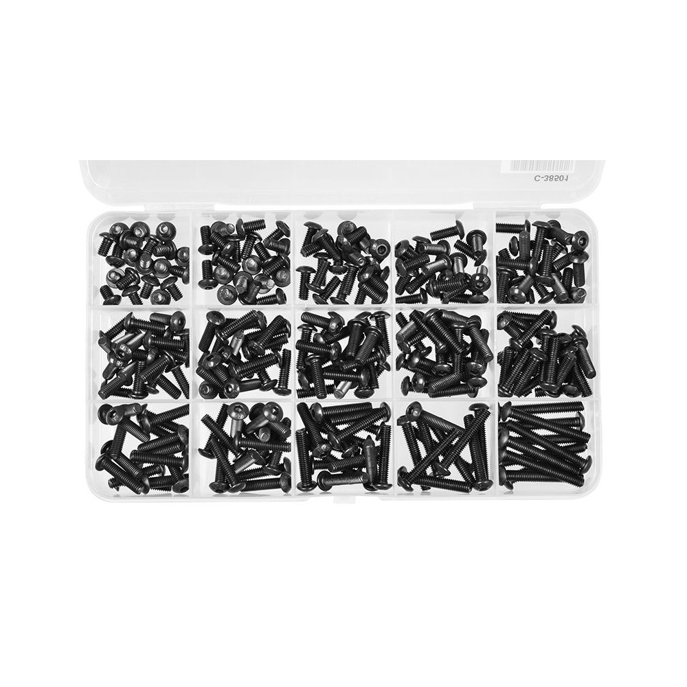 Imbus šrouby s půlkulatou hlavou - sada/box - M4 - ocelové černé, 265 ks.