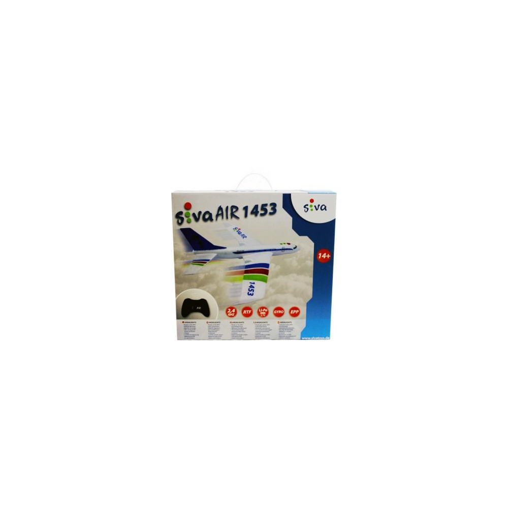 Letoun Siva Air 1453 je dokonalým letadlem pro začátečníky i pro všechny ambiciózní hobby piloty. Je charakterizován velmi dobrými letovými vlastnostmi a robustní a osvědčenou technologií téměř nezničitelného materiálu EPP. K dispozici je také moderní dálkové ovládání 2,4 GHz a baterie LiPo včetně nabíječky. Trup a křídla jsou vyrobeny z materiálu EPP, který je velmi oblíbený v modelářském světě a je odolný proti nárazu. Siva Air 1453 je dodáván do RTF (připraven k letu), po několika okamžicích může startovat.