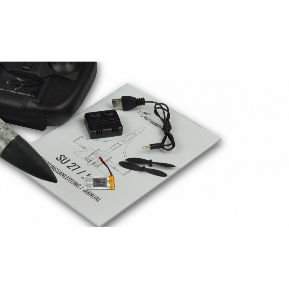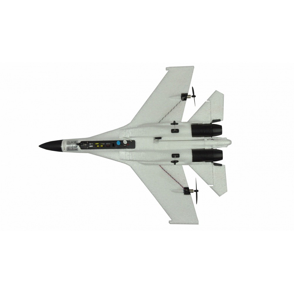 Replika dvoumotorového ruského stíhacího letounu SU-27. Zůstává dnes jedním z nejdůležitějších stíhacích letounů v ruském letectvu a byl vyvinut jako přímý protějšek amerického F-15 Eagle. Model zaujme svými letovými výkony a plně automatickou stabilizací polohy (gyro), která modelu dodává velmi příjemné letové vlastnosti a je vhodný i pro začátečníky. Model je dodáván RTF (Ready to fly), tzn. h není potřeba žádné šroubování, vrtání ani lepení. Vestavěné gyro okamžitě převezme stabilizaci letu a pilot se může soustředit na skutečné ovládání modelu. Jakmile není proveden žádný řídicí pokyn, model se vrátí do horizontálního přímého letu. Pomocí tlačítka na vysílači lze gyro vypnout např. pro přemety. Pokud by se letová situace stala nejistou, gyroskopický spínač slouží jako záchranné lano. Ihned po stisknutí tlačítka se model automaticky vrátí do stabilní letové polohy. Robustní a nárazuvzdorný materiál (EPP) také umožňuje tvrdší pády a přistání. Snadno se opravuje nebo lepí.
