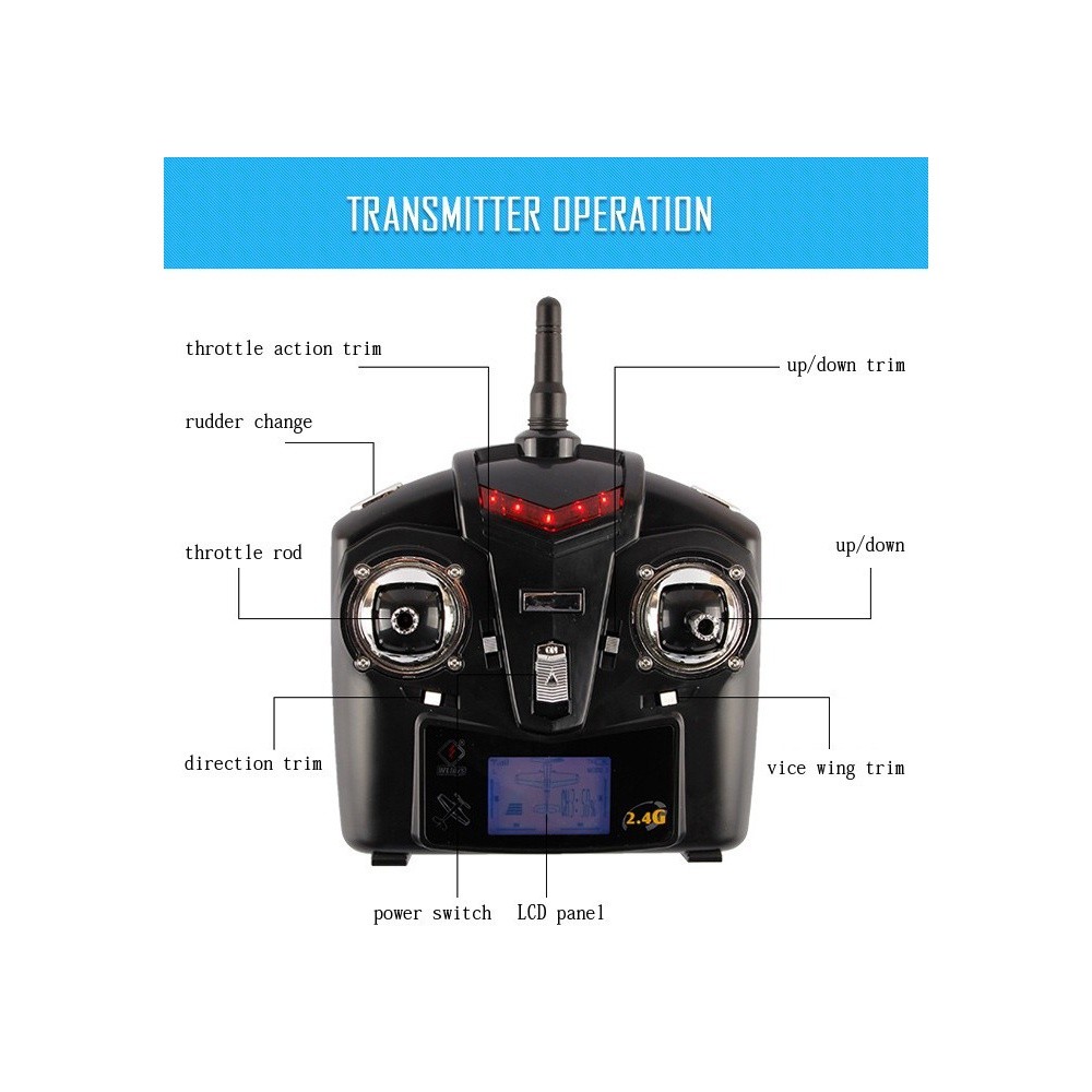 Vysílač 3-kanálový 2,4 GHz LCD displejem v módu 2: plyn na levé ruce.