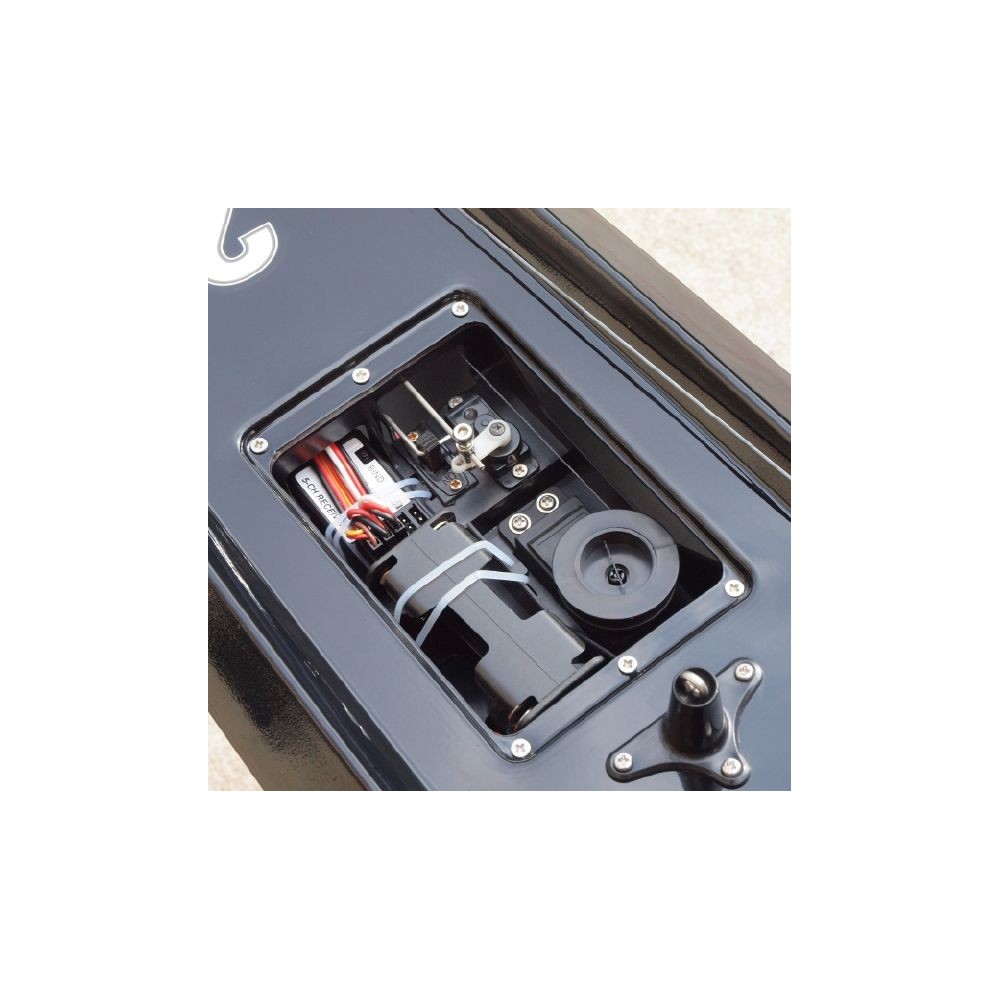 Trup lodi je plastový, snadný přístup k prostoru pro přijímačové akumulátory zaručuje kryka ze speciální opakovatelně použitelné plastové fólie. Pokud byste se z nějakého důvodu potřebovali dostat k přijímači a servům ovládajícím kormidlo a plachty, je možné po vyšroubování 6 šroubů vyjmout celé lože serv a elektroniky.