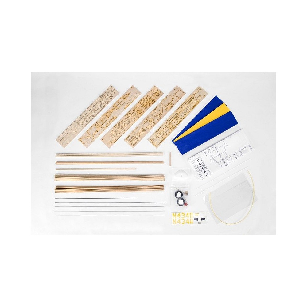 Stavebnice obsahuje: balsové laserem vyřezávané díly, balsové nosníky, vakuově lisované díly (kryt motoru...), čirou plastovou fólii na "zasklení" kabiny, ocelovou strunu na podvozek a další drobné díly, lehká pěnová kola, barevný potahový papír, aršík samolepek, stavební plán.