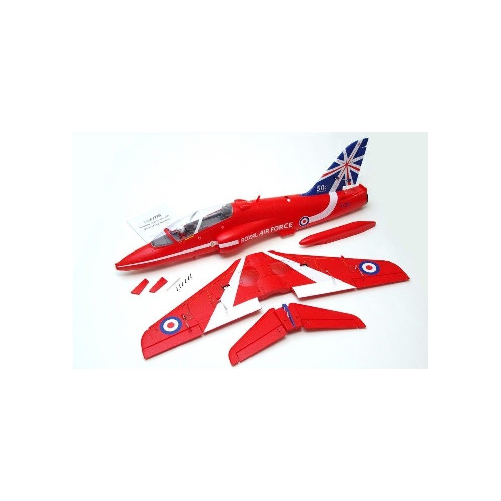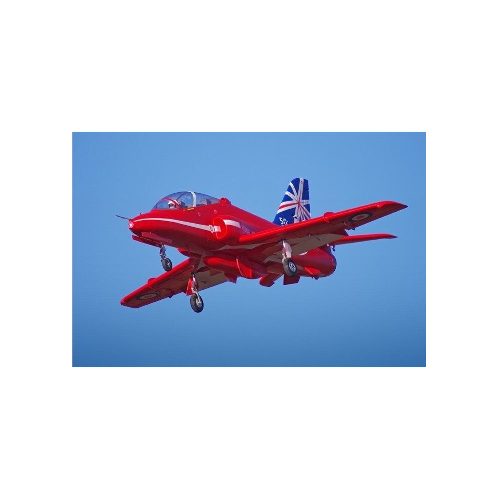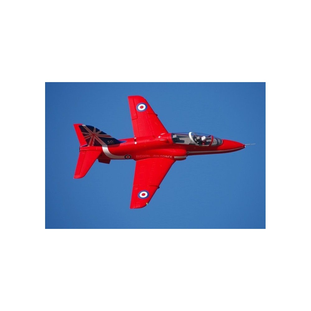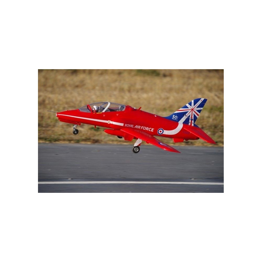 ARF set britského cvičného proudového letadla z pěnového EPO s 80mm dmychadlem se střídavým motorem, 100A regulátorem, 8 servy a elektrickým zatahovacím podvozkem. Pro napájení 6S LiPo 4000 mAh. V barvách akrobatické skupiny RAF Red Arrows.