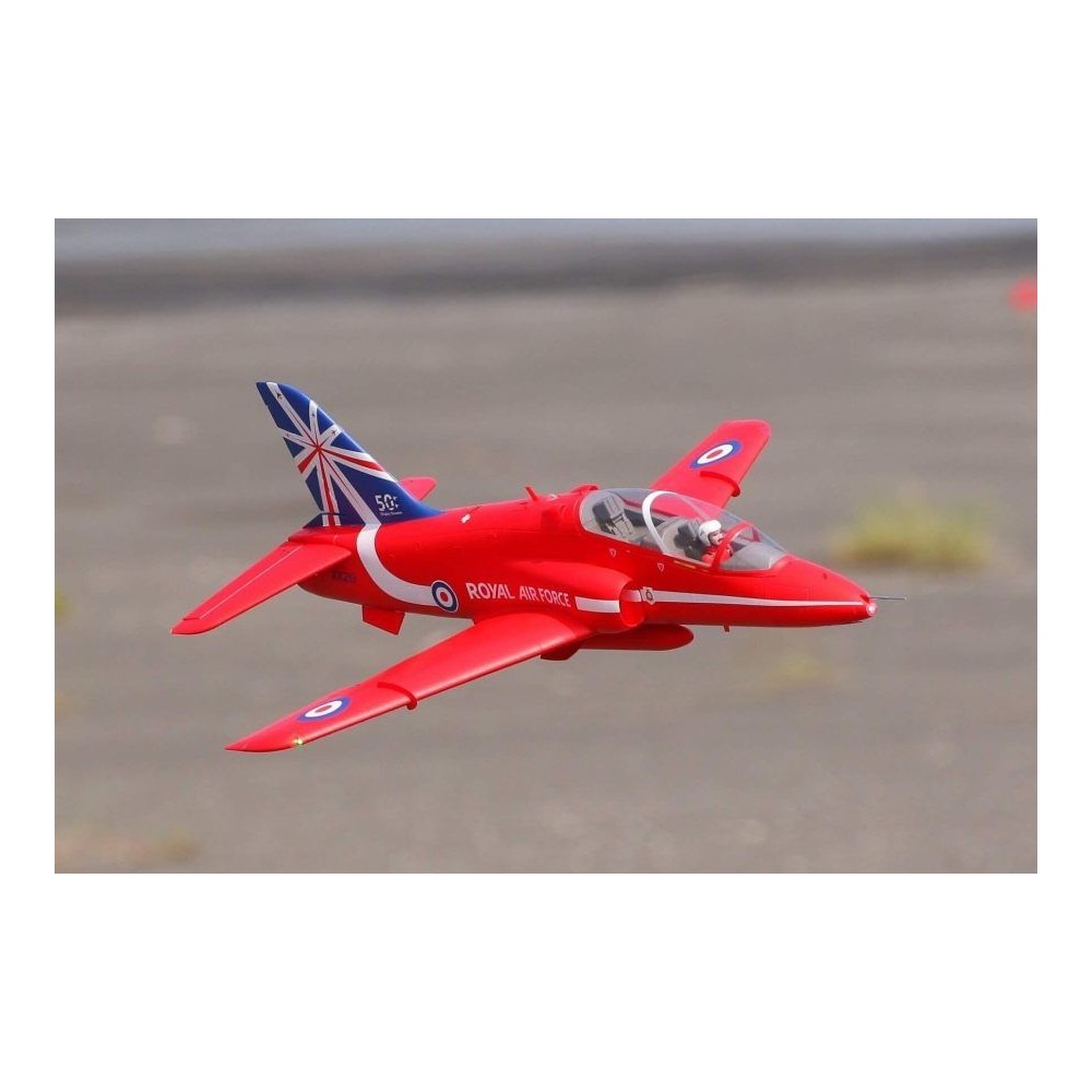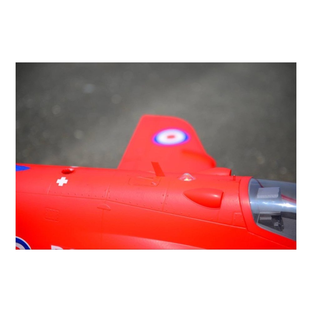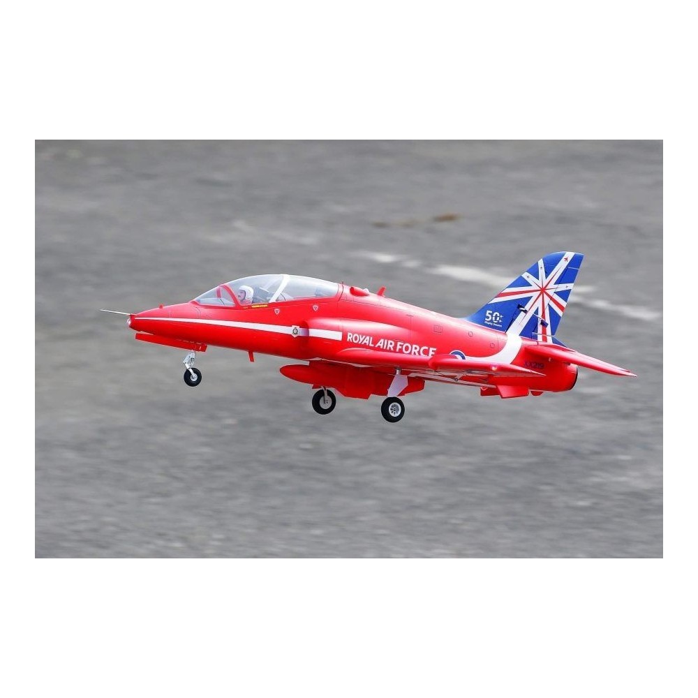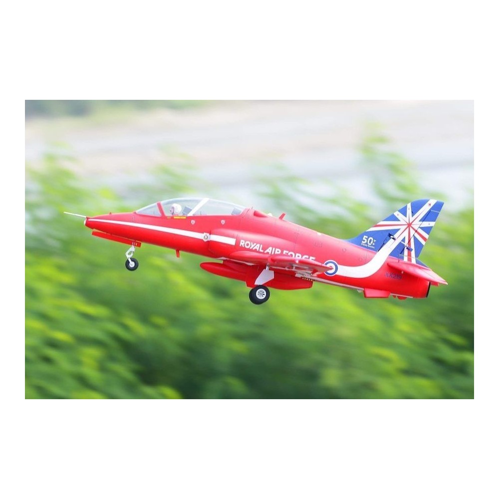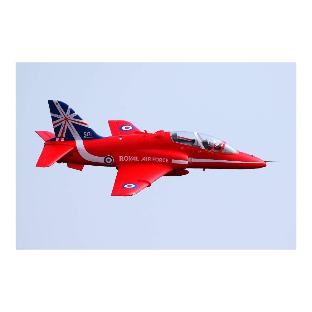 ARF set britského cvičného proudového letadla z pěnového EPO s 80mm dmychadlem se střídavým motorem, 100A regulátorem, 8 servy a elektrickým zatahovacím podvozkem. Pro napájení 6S LiPo 4000 mAh. V barvách akrobatické skupiny RAF Red Arrows.