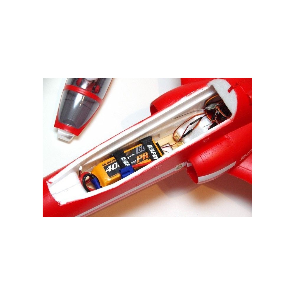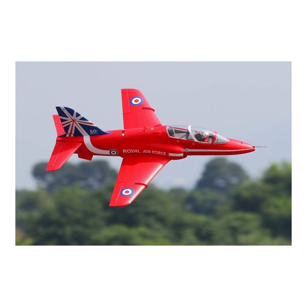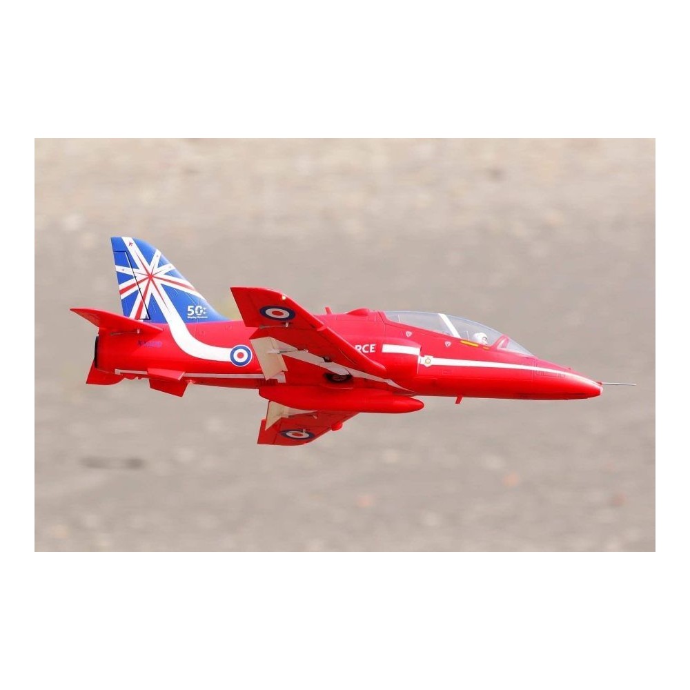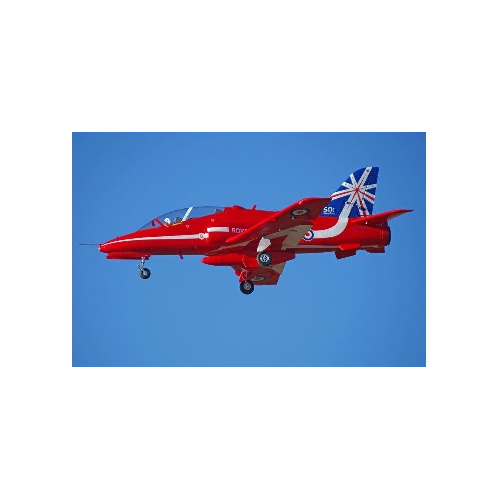 ARF set britského cvičného proudového letadla z pěnového EPO s 80mm dmychadlem se střídavým motorem, 100A regulátorem, 8 servy a elektrickým zatahovacím podvozkem. Pro napájení 6S LiPo 4000 mAh. V barvách akrobatické skupiny RAF Red Arrows.