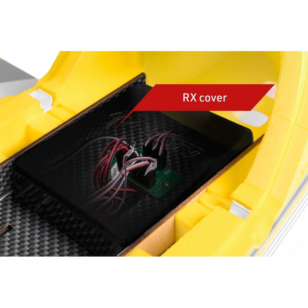 Trup modelu je zhotoven z vysoce odolného pěnového EPO (extrudovaného polyolefinu) s důkladnými vnitřními uhlíkovými výztuhami. V přídi je nainstalován střídavý elektromotor C3548-800 s třílistou vrtulí 10x6“ a regulátorem KAVAN R-50SB s výkonným BEC stabilizátorem napájení potřebným pro napájení 7 serv na palubě. Kryt kabiny je odnímatelný, upevňuje se pomocí čepu vpředu a dvou mechanických západek vzadu. V prostoru kabiny najdete dostatek prostoru pro pohonný akumulátor a přijímač.