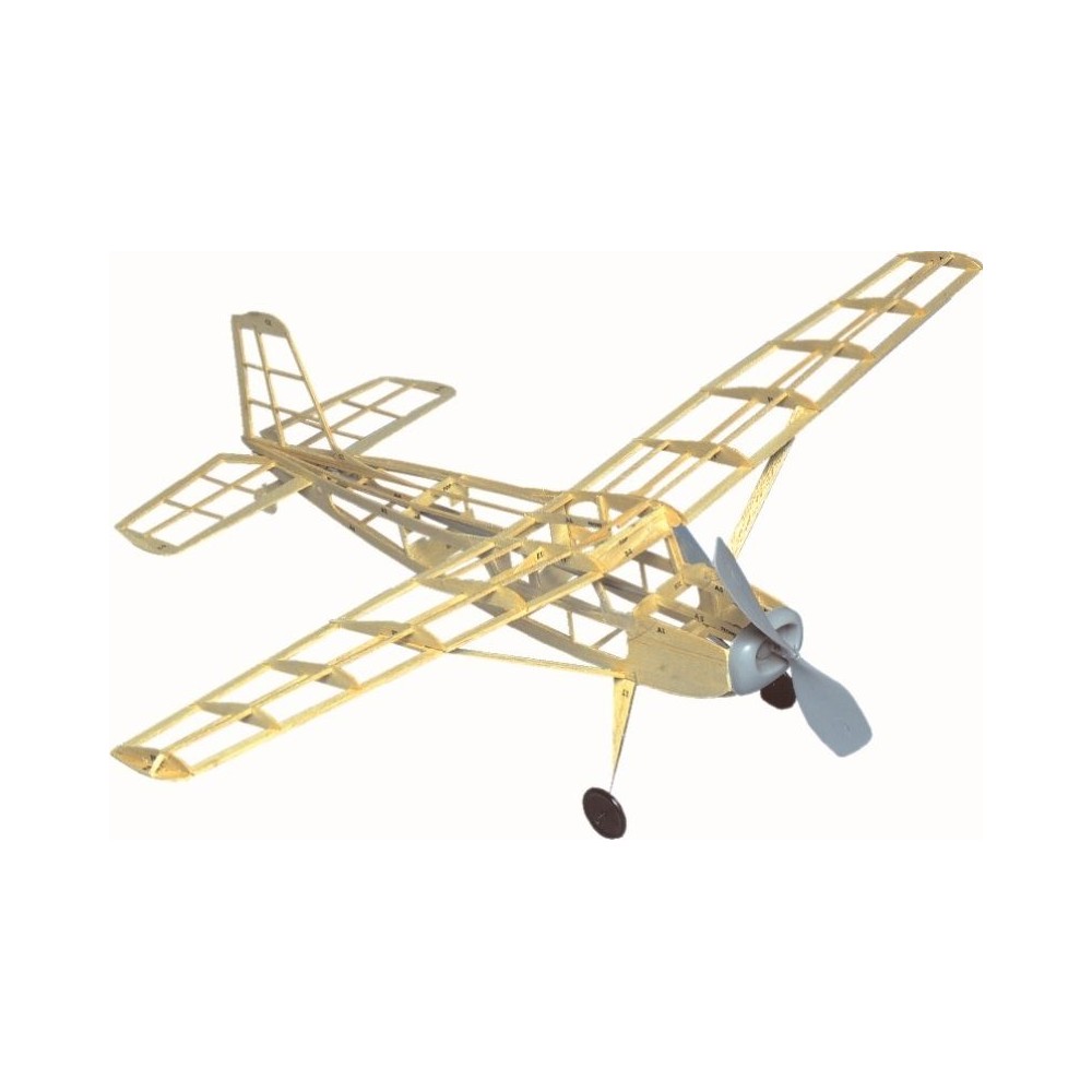 Polomaketa amerického sportovního letadla s gumovým pohonem s jednoduchou stavbou. Vysekávané díly, vrtule, gumový svazek a potah. materiál. Rozpětí 508 mm.