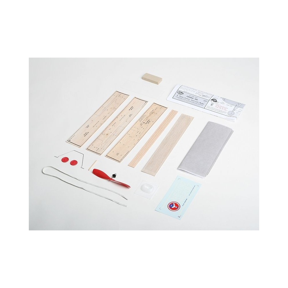 Stavebnice obsahuje: balsové předseknuté díly, balsové nosníky, vakuově lisované díly (kryt motoru), plastovou vrtuli s hřídelí a hlavicí, gumový svazek, plastová kola, ocelovou strunu na podvozek a další drobné díly, plastelínu jako zátěž, potahový papír, aršík mokrých obtisků, stavební plán.