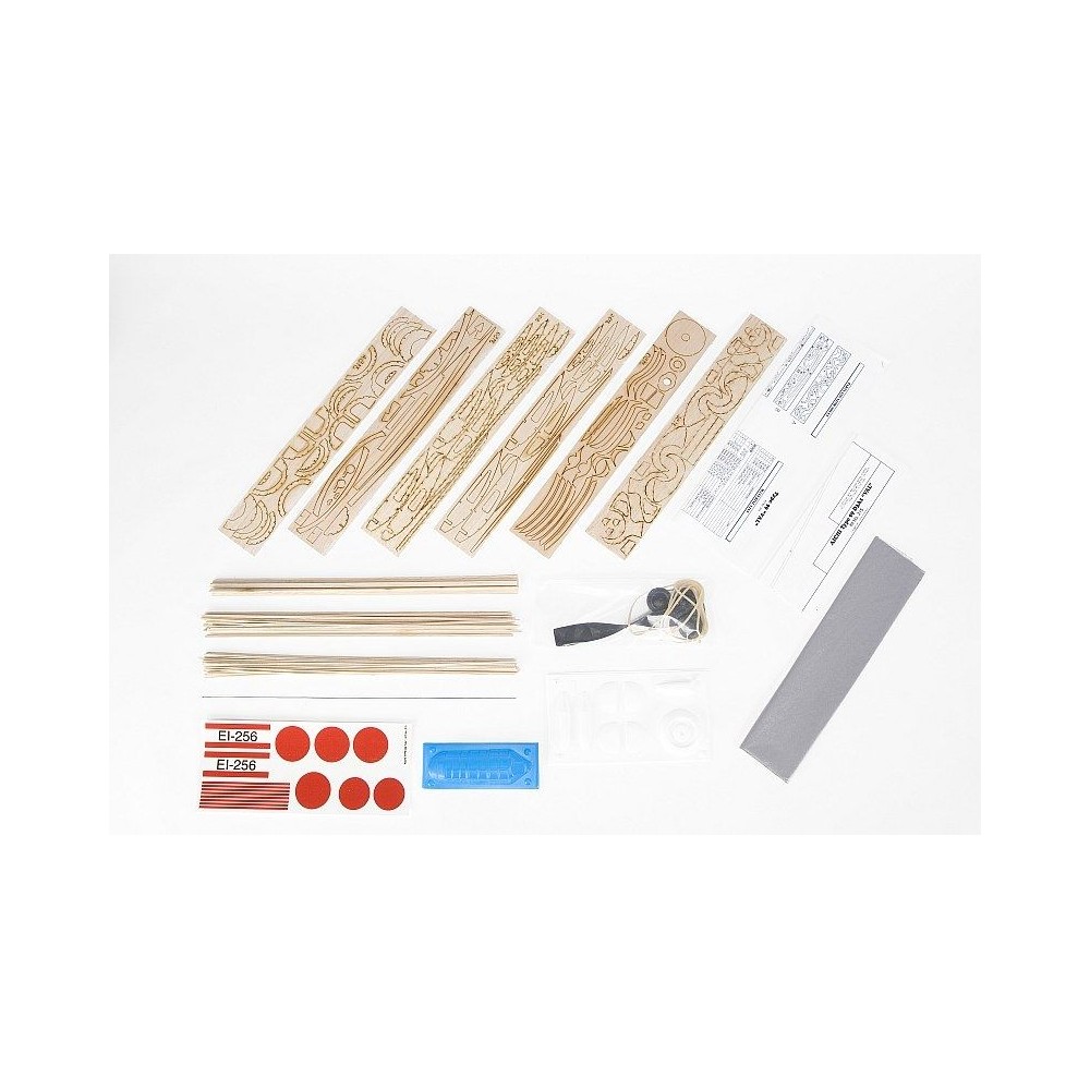 Stavebnice obsahuje: balsové laserem vyřezávané díly, balsové nosníky, vakuově lisované díly (kryt motoru, kryt kabiny...), plastovou vrtuli s hřídelí a hlavicí, gumový svazek (soutěžní guma FAI TAN II), kola, ocelovou strunu na podvozek a další drobné díly, barevný potahový papír, aršík samolepek, stavební plán.