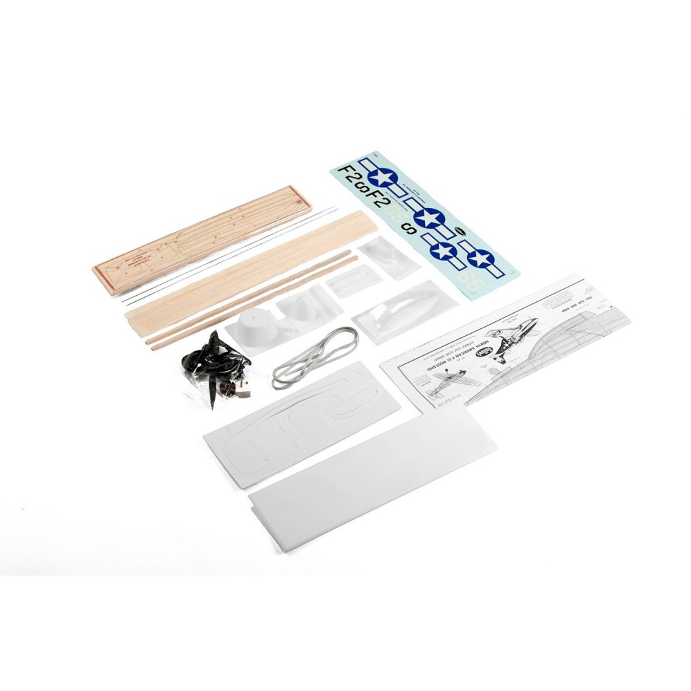 Maketa amerického stíhacího letadla z II. sv. války s gumovým pohonem. Nyní nově laserem vyřezávané díly, vrtule, gumový svazek a potah. materiál. Rozpětí 705 mm. Vhodná pro konverzi na RC elektru.