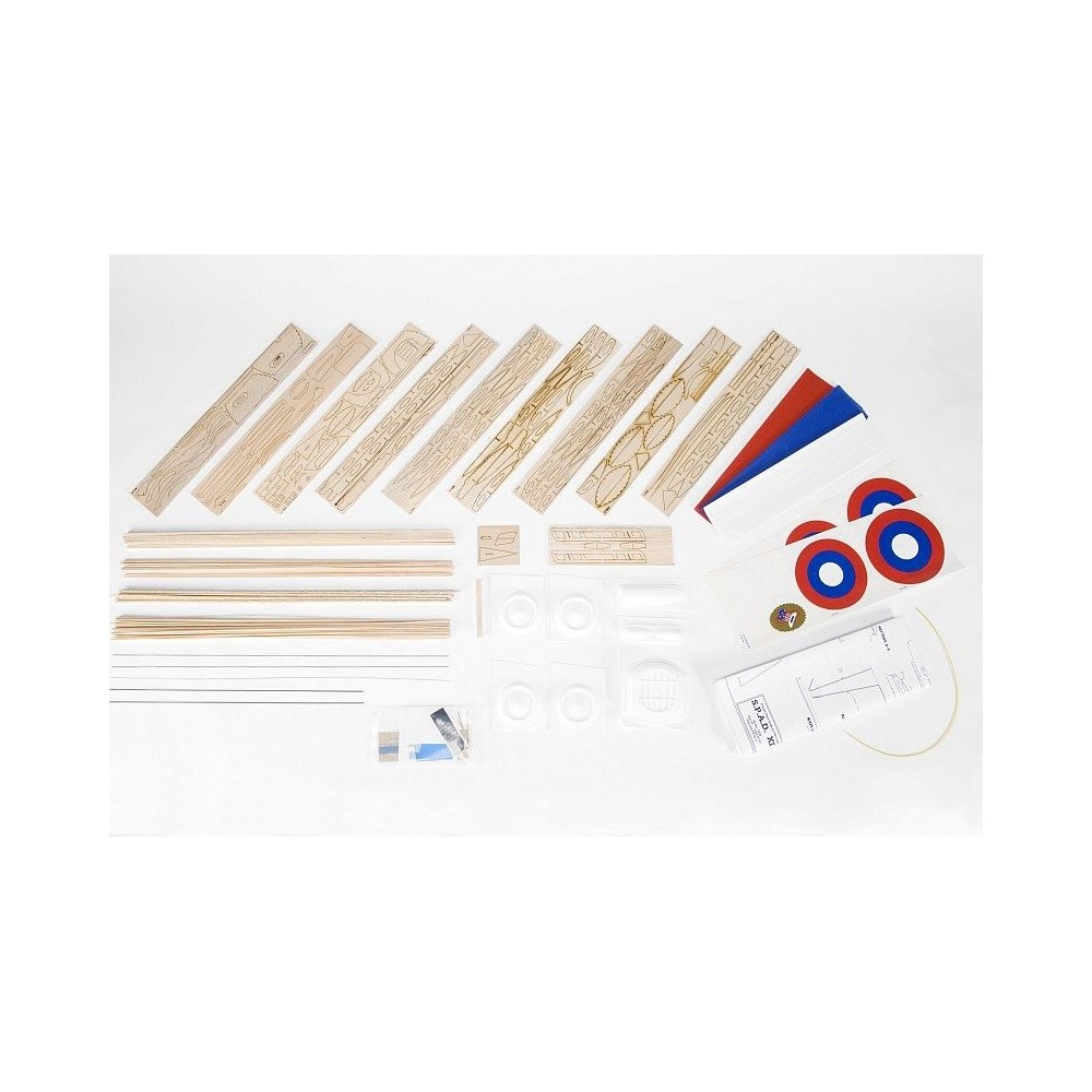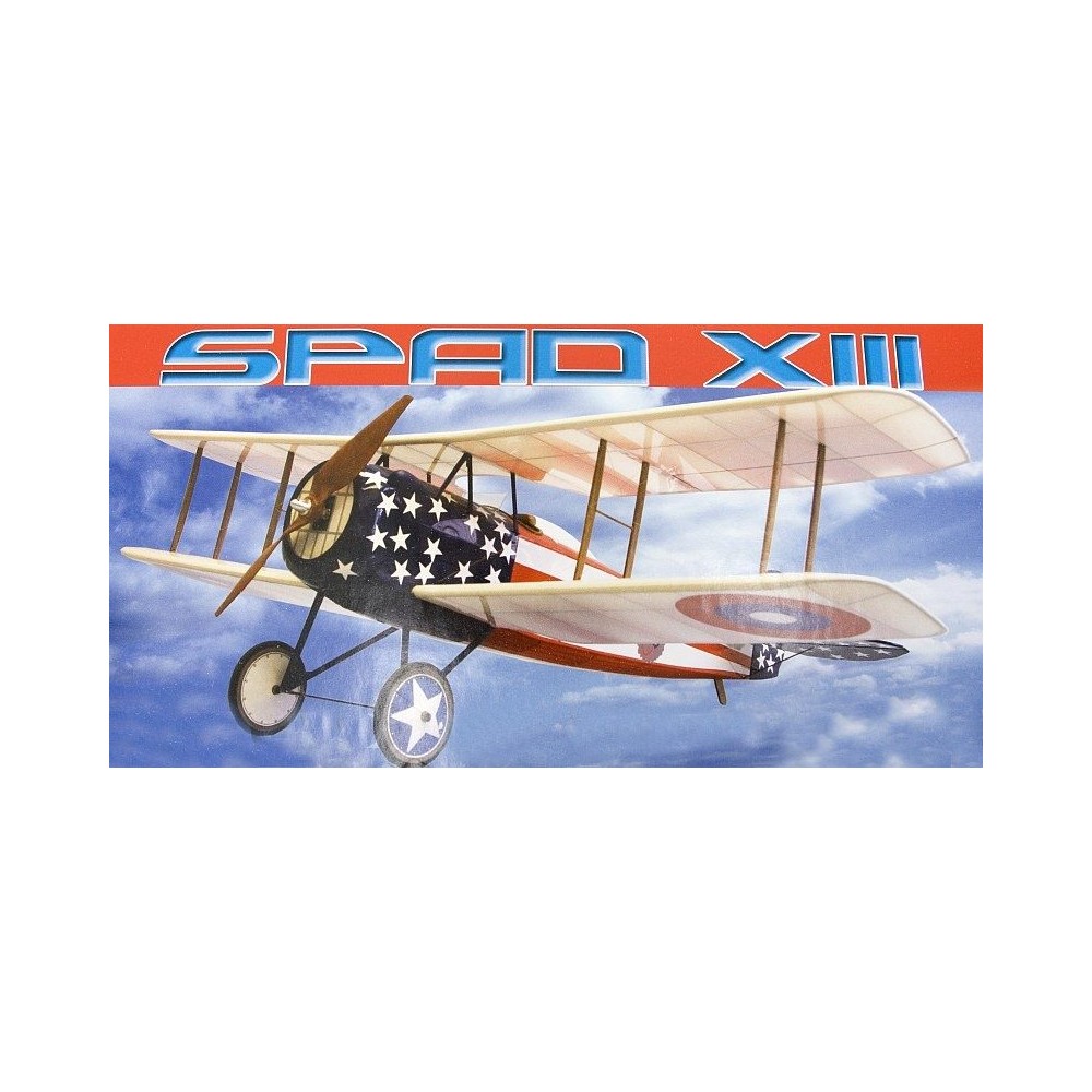 SPAD S.XIII byl v roce 1917 francouzskou odpovědí na nástup výkonných stíhacích letadel, jako byly Fokker D.VII nebo Sopwith Camel. SPAD byl rychlejší, měl na svou dobu silnou výzbroj dvou synchronizovaných kulometů a díky pevné kostře se mohl pustit do delšího střemhlavého letu, ve kterém by se třeba trojplošným Fokkerům Dr.I začal počet křídel rychle zmenšovat. Na druhou stranu byl méně obratný (zvláště při malé rychlosti) a byl proslulý snadným přechodem do ostré vývrtky při přetažení. Se SPADy S.XIII létala nejlepší francouzská esa jako Georges Guynemer a Rene Fonck, Ital Francesco Baracca a ve výzbroji je měly i americké eskadry. Právě stroj americké 94. squadrony (známé pod přezdívkou "Hat-in-the-Ring" podle symbolu klobouku v kruhu) s dnes již napůl zapomenutými americkými kokardami si můžete postavit z naší stavebnice. S takovým Eddie Rickenbacker sestřelil 20 německých letadel a upoutaných balonů.