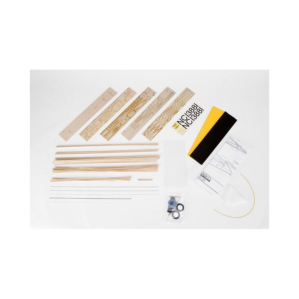 Stavebnice obsahuje: balsové laserem vyřezávané díly, balsové nosníky, vakuově lisované díly (kryt motoru, kryt kabiny...), čirou plastovou fólii na "zasklení" kabiny, ocelovou strunu na podvozek a další drobné díly, lehká pěnová kola, barevný potahový papír, aršík samolepek, stavební plán.