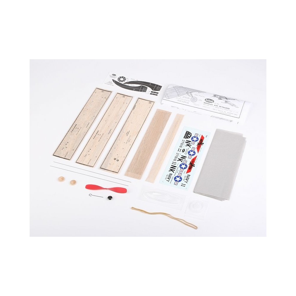 Stavebnice obsahuje: balsové předseknuté díly, balsové nosníky, vakuově lisované díly (přední část krytu motoru, kryt kabiny), plastovou vrtuli s hřídelí a hlavicí, gumový svazek, vysoustružená balsová kola, ocelovou strunu na podvozek a další drobné díly, potahový papír, aršík mokrých obtisků, stavební plán.