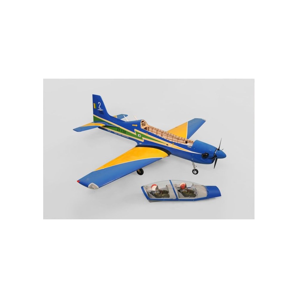 ARF stavebnicebrazilského vojenského cvičného letounu klasické celobalsové konstrukce pro pohon benzínovým motorem 40-60 ccm pro zkušené piloty obřích modelů.