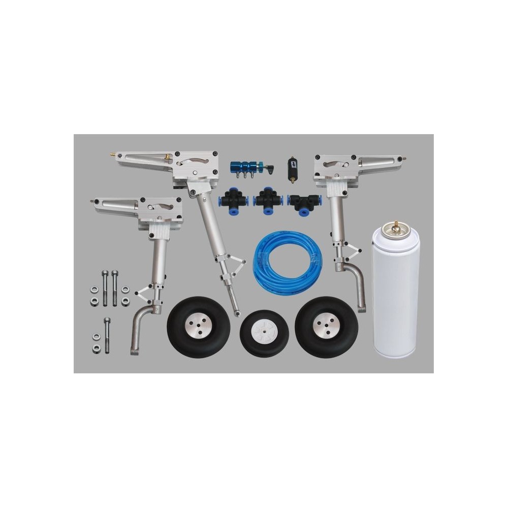 Podvozek je tříkolový pneumatický zatahovací s odpruženými nohami a řiditelnou příďovou nohou.
