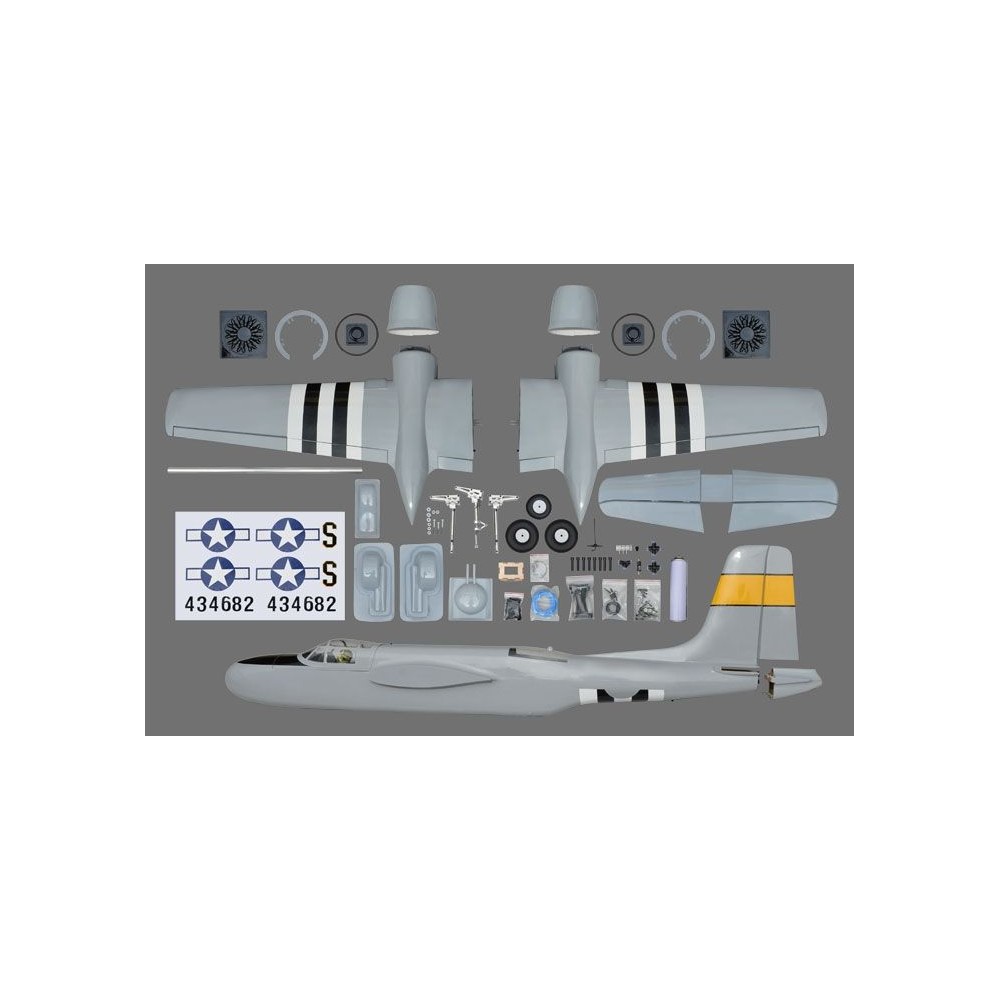 Stavebnice obsahuje: nažehlovací fólií potažený trup, křídlo a ocasní plochy, nastříkané laminátové motorové kryty, 2 plastová motorová lože pro spalovací motory, sadu drobného příslušenství, pneumatický zatahovací podvozek s odpruženými nohami, kola a podrobný obrázkový návod.
