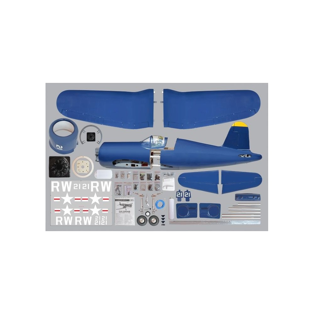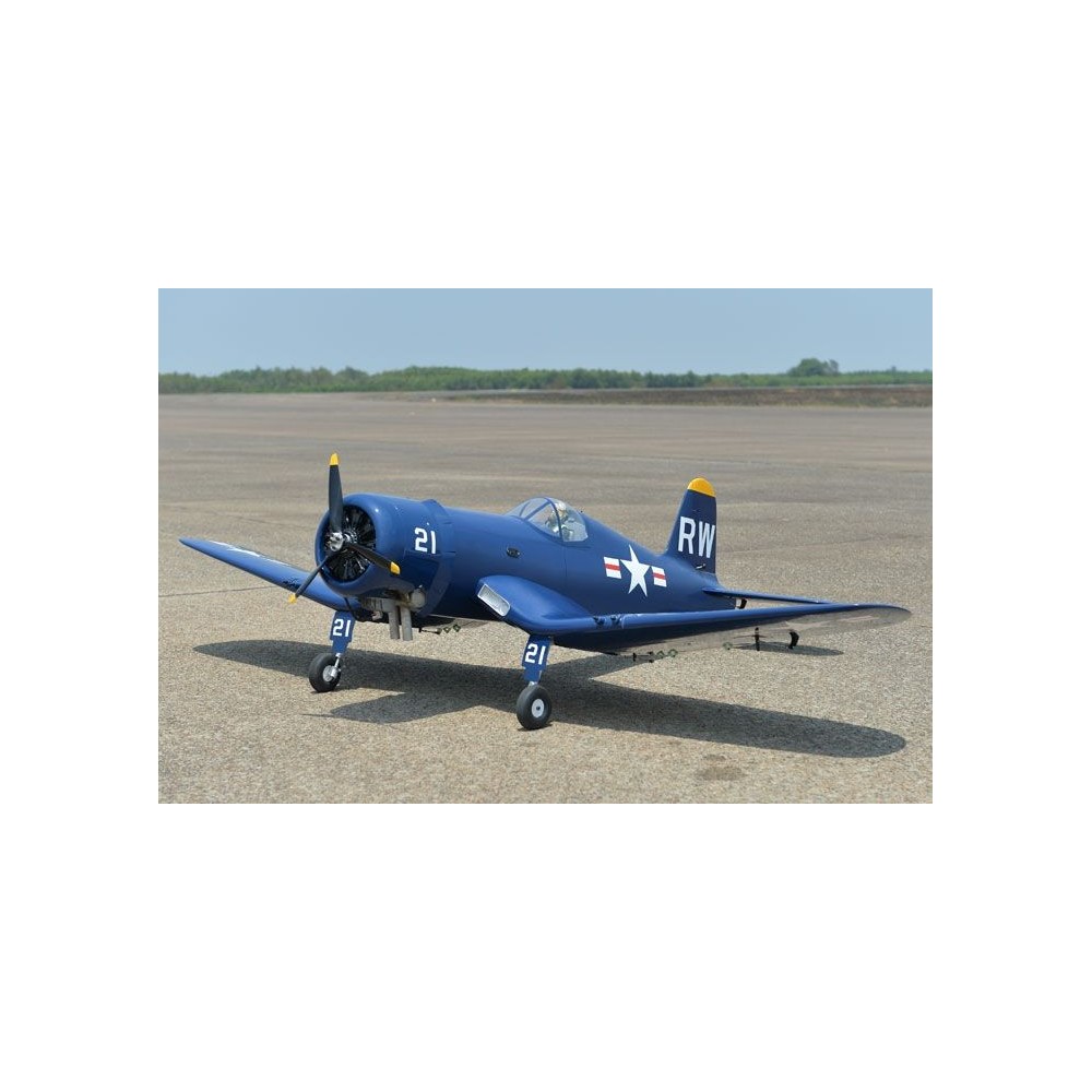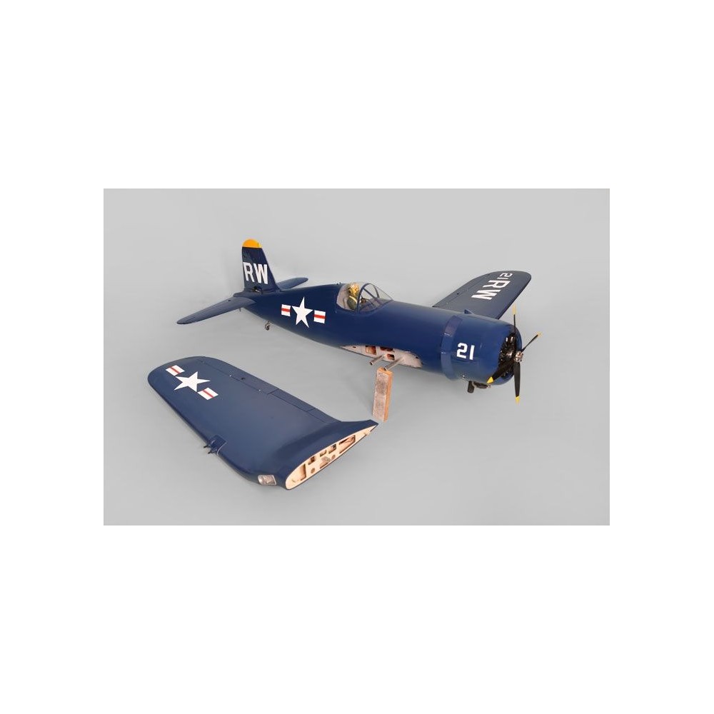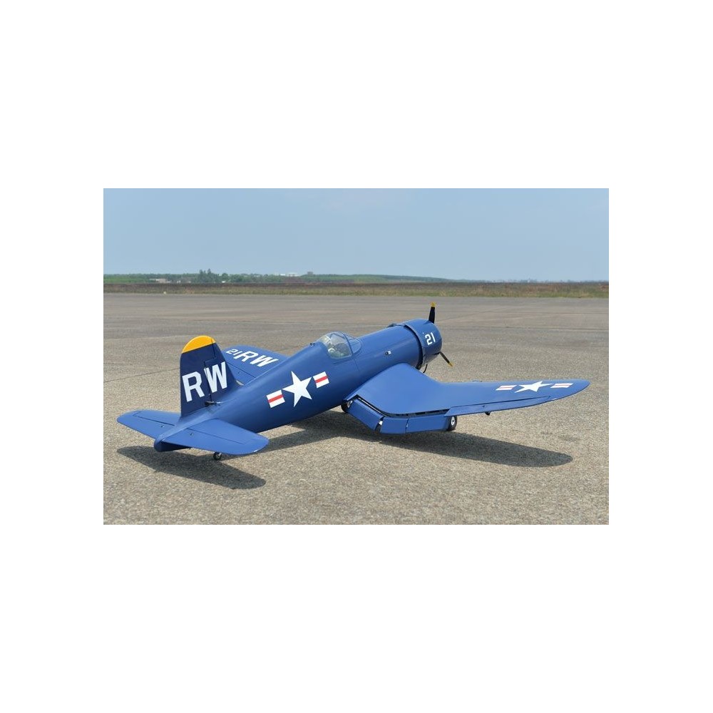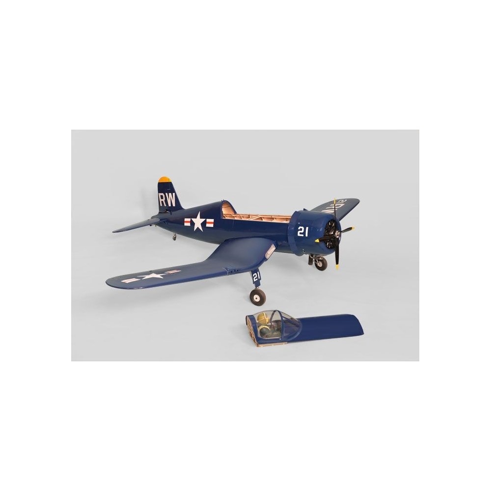 ARF stavebnice legendárního amerického námořního stíhacího letadla klasické celobalsové konstrukce pro pohon benzínovým motorem 50-60 ccm pro zkušené piloty obřích modelů. Dvoumetrový Corsair je ideálním projektem pro modeláře, který má již zkušenosti se obřími modely pro motory 30-50 ccm, a hodlá se pustit do létání s většími a složitějšími maketami rychlých strojů s vyšším plošným zatížením. Díky vysokému stupni "předpostavení" jde dokončení modelu celkem rychle a snadno - samozřejmě, vzhledem k velikosti modelu a složitosti palubní elektroniky a mechanismů zatahovacího podvozku to není projekt pro zelenáče.