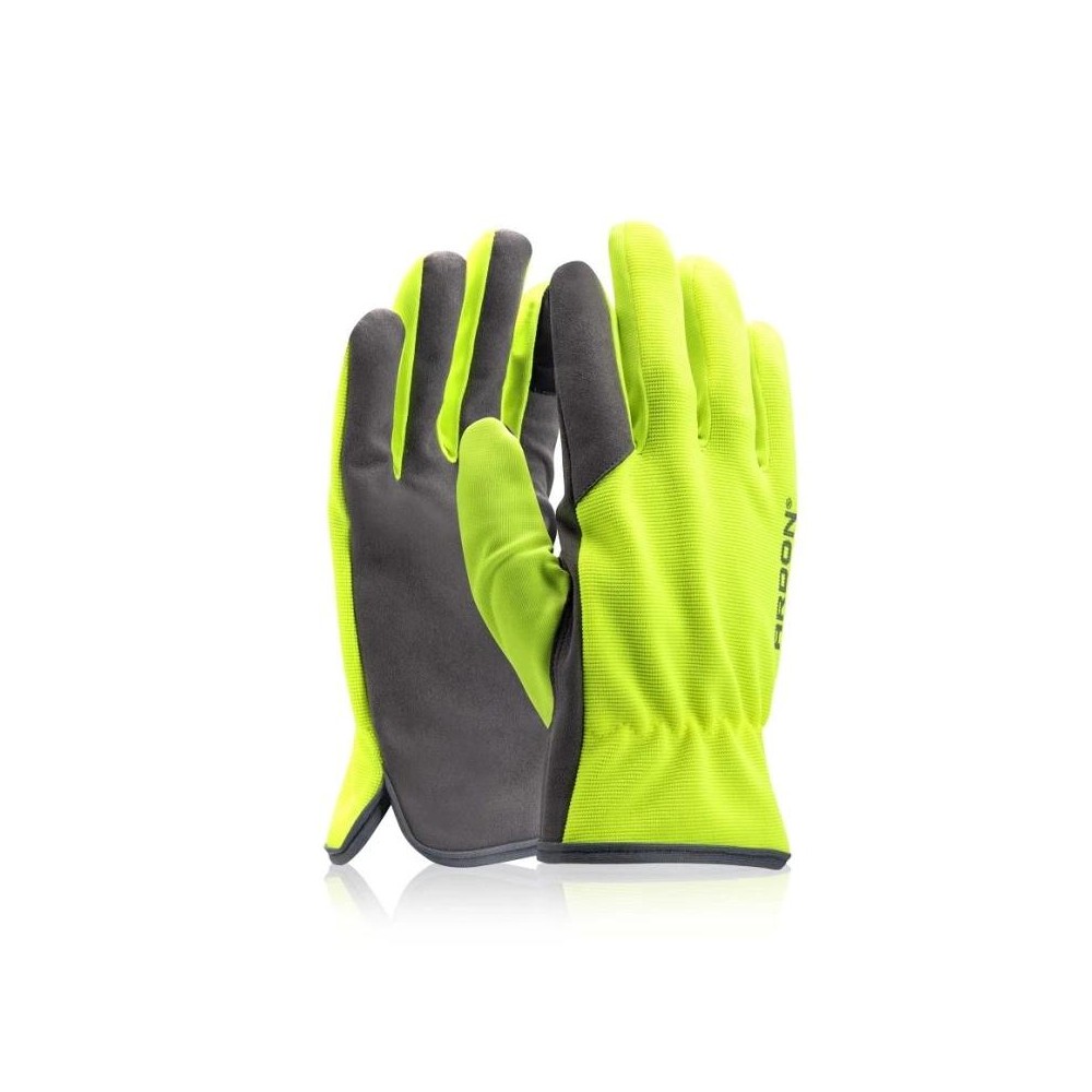 Kombinované rukavice ze syntetické usně s elastickým nylonovým hřbetem.