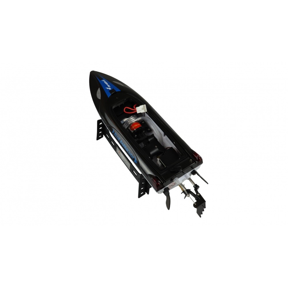 Blue Barracuda V2 – rychlejší, agilnější, delší dojezd, větší baterie pro delší dobu jízdy a optimalizované bezpečnostní prvky. Populární závodní loď základní úrovně byla v mnoha oblastech opět vylepšena. Ideální pro malé vodní plochy. S LED osvětlením vpředu i vzadu pro lepší orientaci a viditelnost. Zážitkem je i jízda za šera. Světla lze zapínat a vypínat pomocí moderního dálkového ovladače 2,4 GHz, který se snadno drží. Zcela přepracován byl také trup. Nyní má dvojité těsnění (2 víčka) a nyní ještě účinněji chrání před vniknutím vody. Člun je odolný proti převrácení. Díky ergonomické a promyšlené konstrukci trupu klouže loď velmi hladce a elegantně po vodní hladině. Člun dokonce dosahuje úžasné rychlosti až 25 km/h. Elegantní, nadčasový design a linie bez ozdůbek. Blue Barracuda V2 má také ochrannou funkci proti náhodnému spuštění výkonného motoru z vody. Výstražná funkce integrovaná ve vysílači, pokud dojde k překročení dosahu. Pozoruhodné na tomto modelu je také plně proporcionální dálkové ovládání (umožňuje citlivé řízení a akceleraci). Vyzdvihnout je třeba i vodní chlazení, které je již standardně instalováno a je pro tuto třídu lodí neobvyklé. To znamená, že tato závodní loď zůstane vždy „v pohodě“ i při delších výletech na plný plyn a v létě.