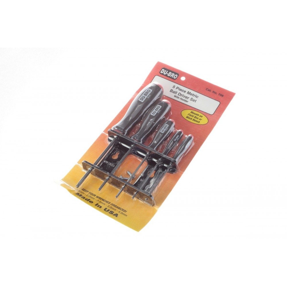Sada 5 metrických imbusových šroubováků s kuličkou (1,5mm, 2,0mm, 2,5mm, 3,0mm, 4,0mm) a závěsným držákem