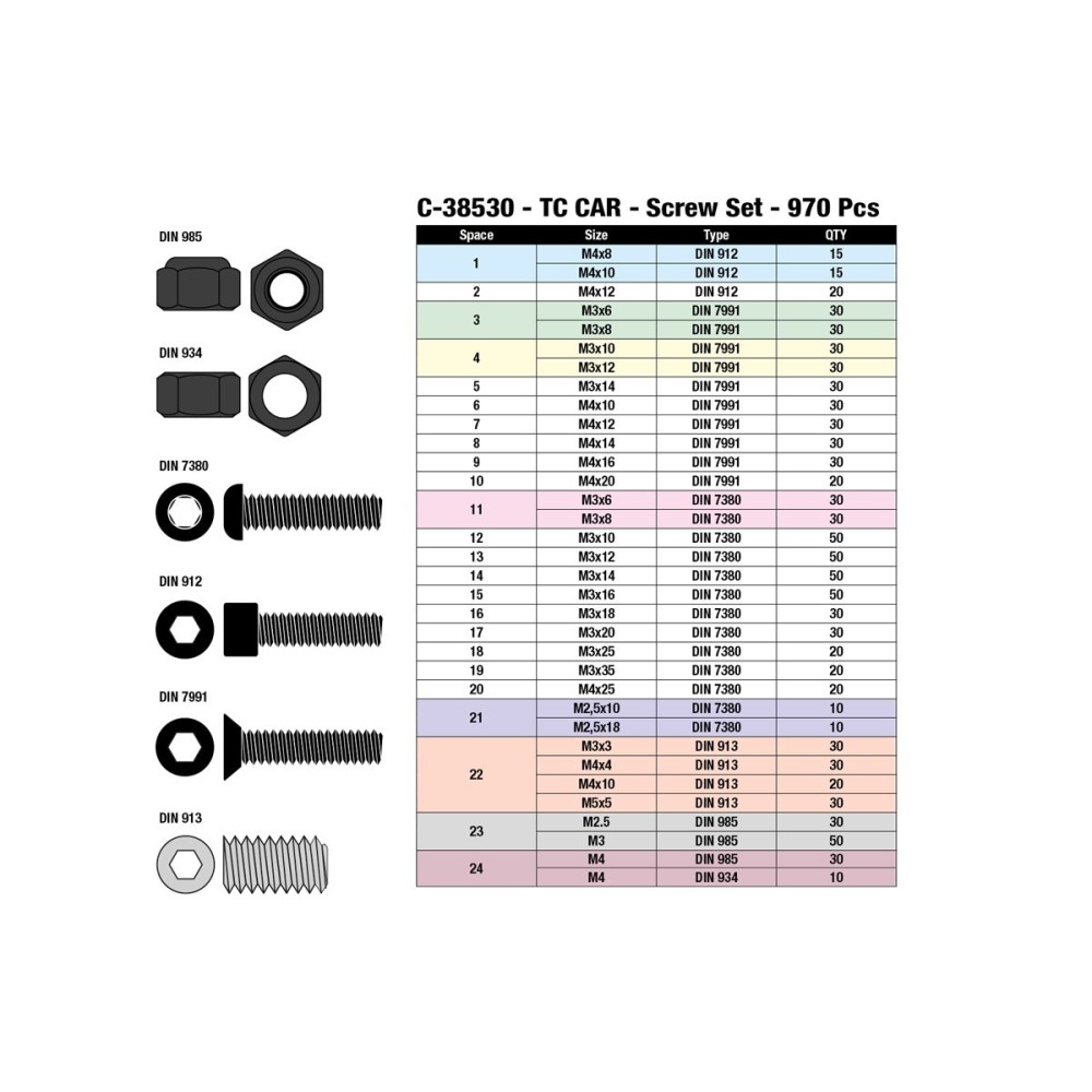 Sada matek a Imbus šroubů - sada/box - M2,5 až M5 - ocelové černé, 970 ks.
