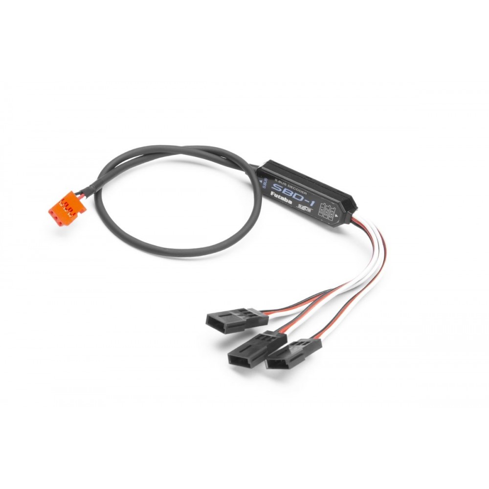 Kabelový dekodér S-BUS umožňující připojení až tří klasických serv k sériové sběrnici S-BUS, vhodný pro analogová i digitální serva se standardním napájením 4,8-6,0 V (4-5čl. NiMH). Nelze použít pro sběrnici S-BUS2.