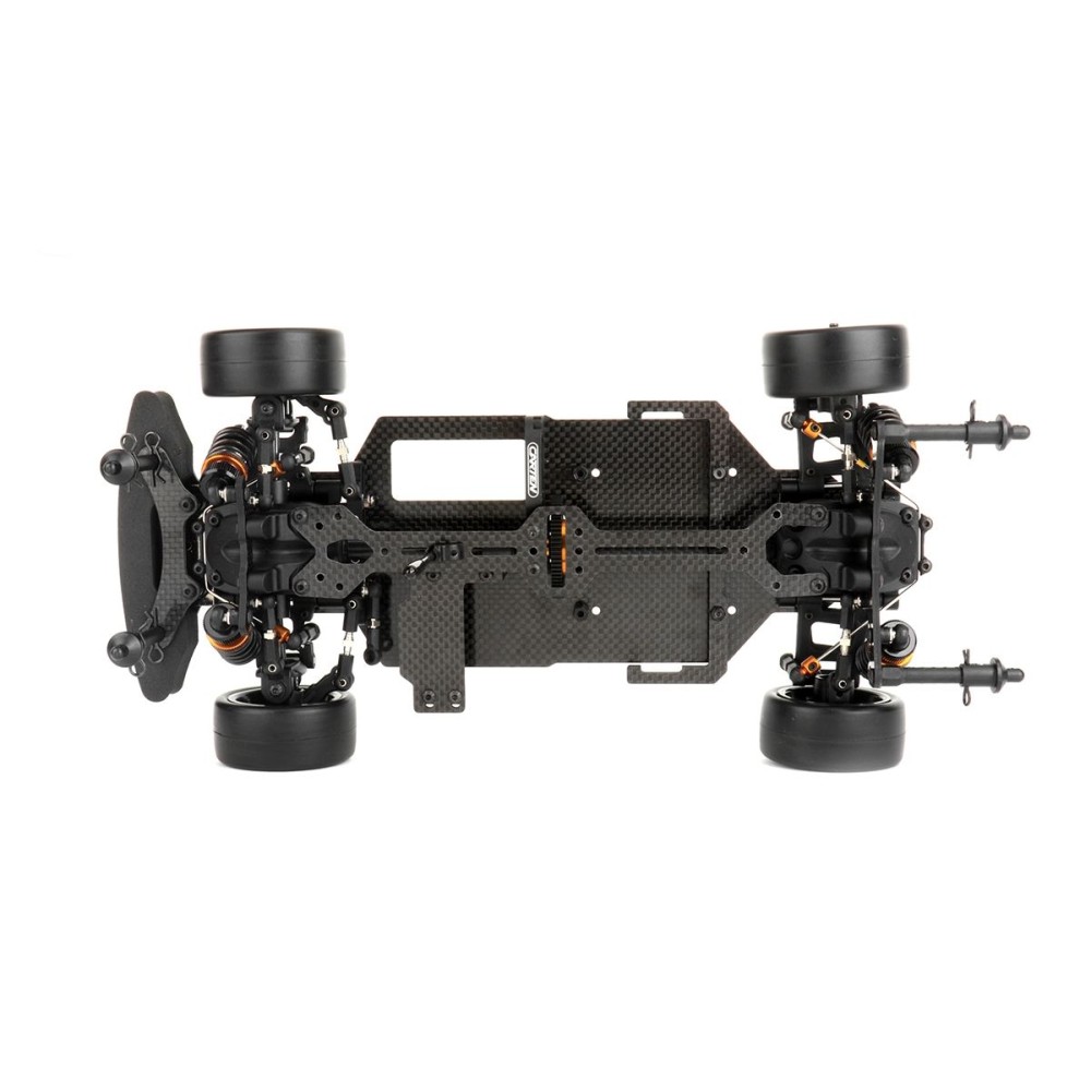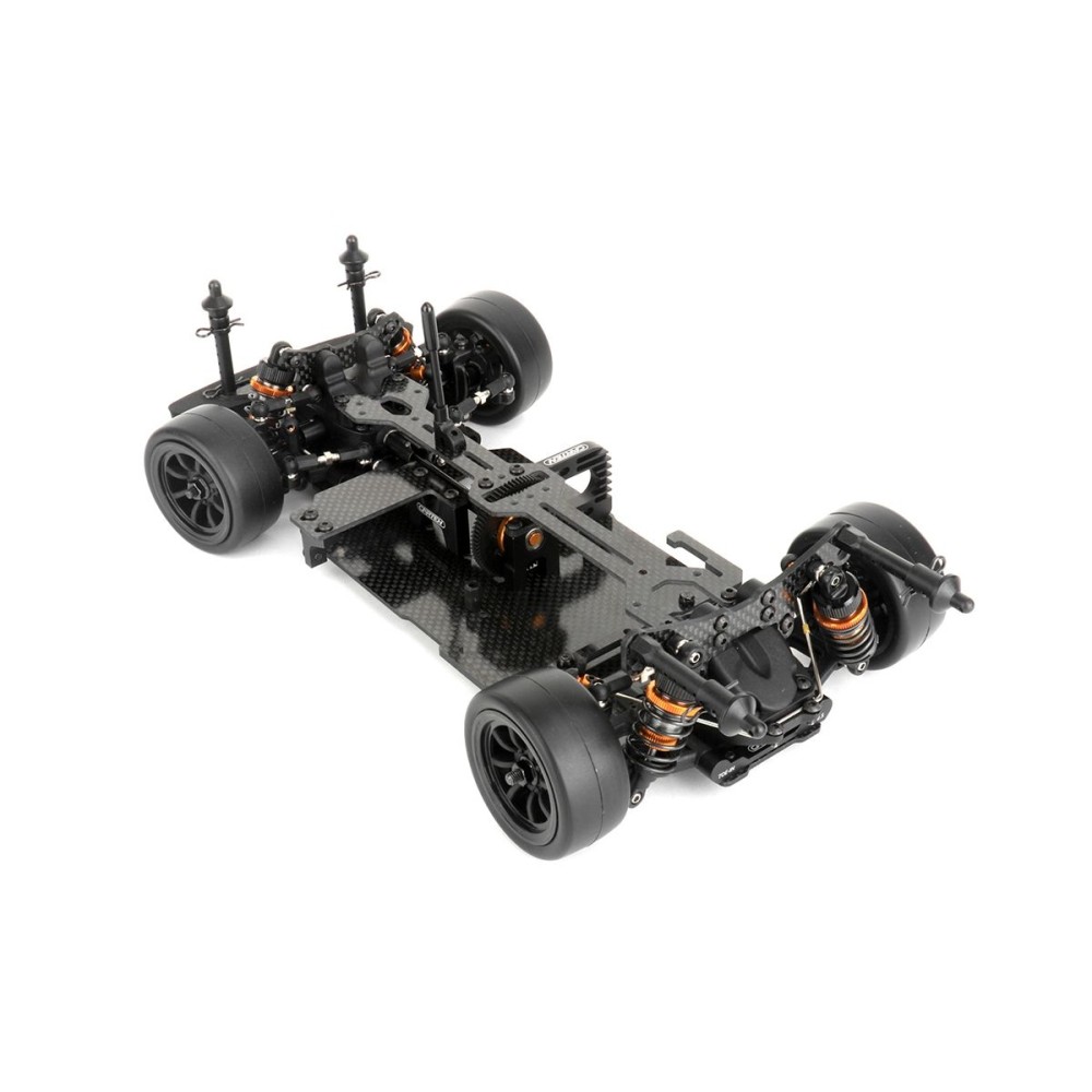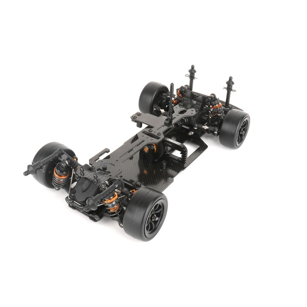Stavebnice podvozku pro 1/10 RC drift, bez kol, karoserie a elektroniky.