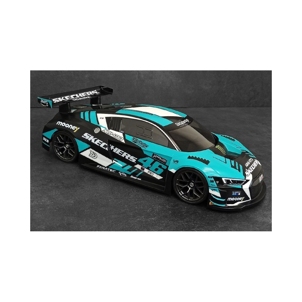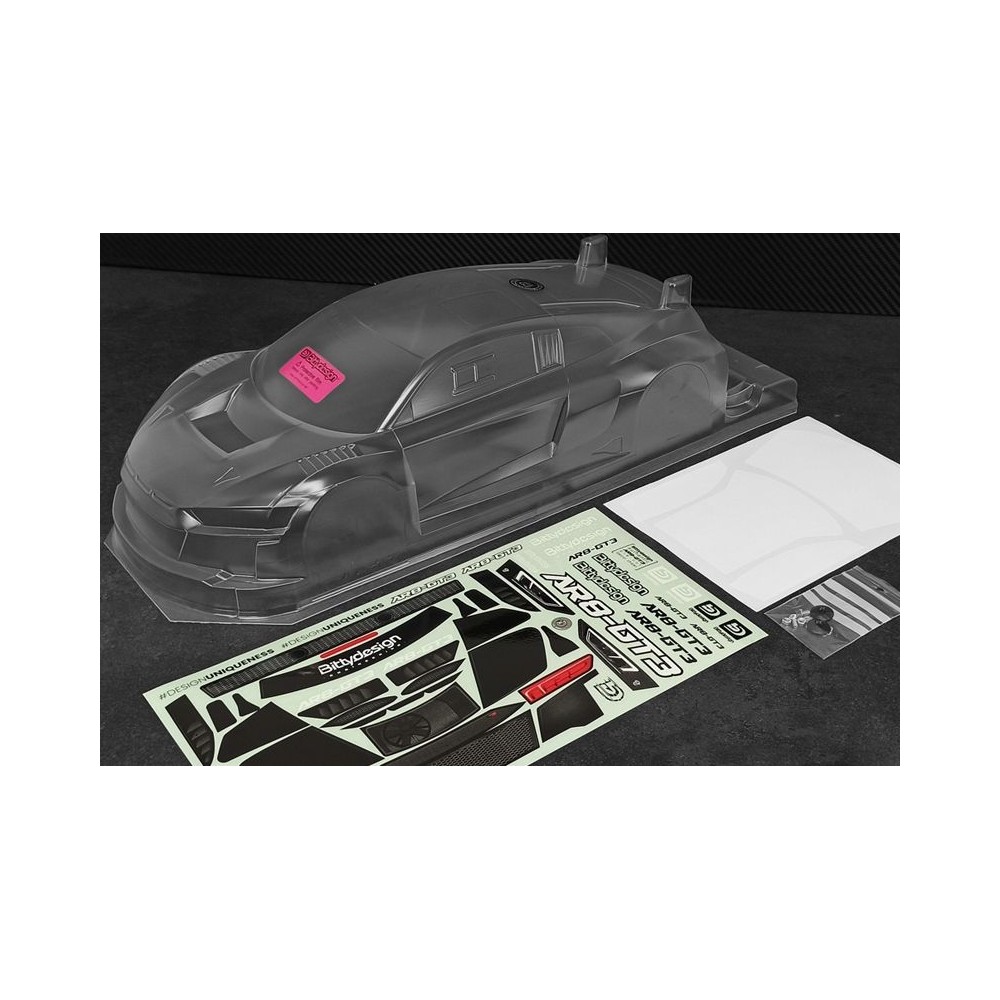 Čirá karoserie pro modely 1/10 GT je pokryta ochranou folií, vyrobena z velmi kvalitního polykarbonátu, balení obsahuje maskovací nálepky včetně samolepek.