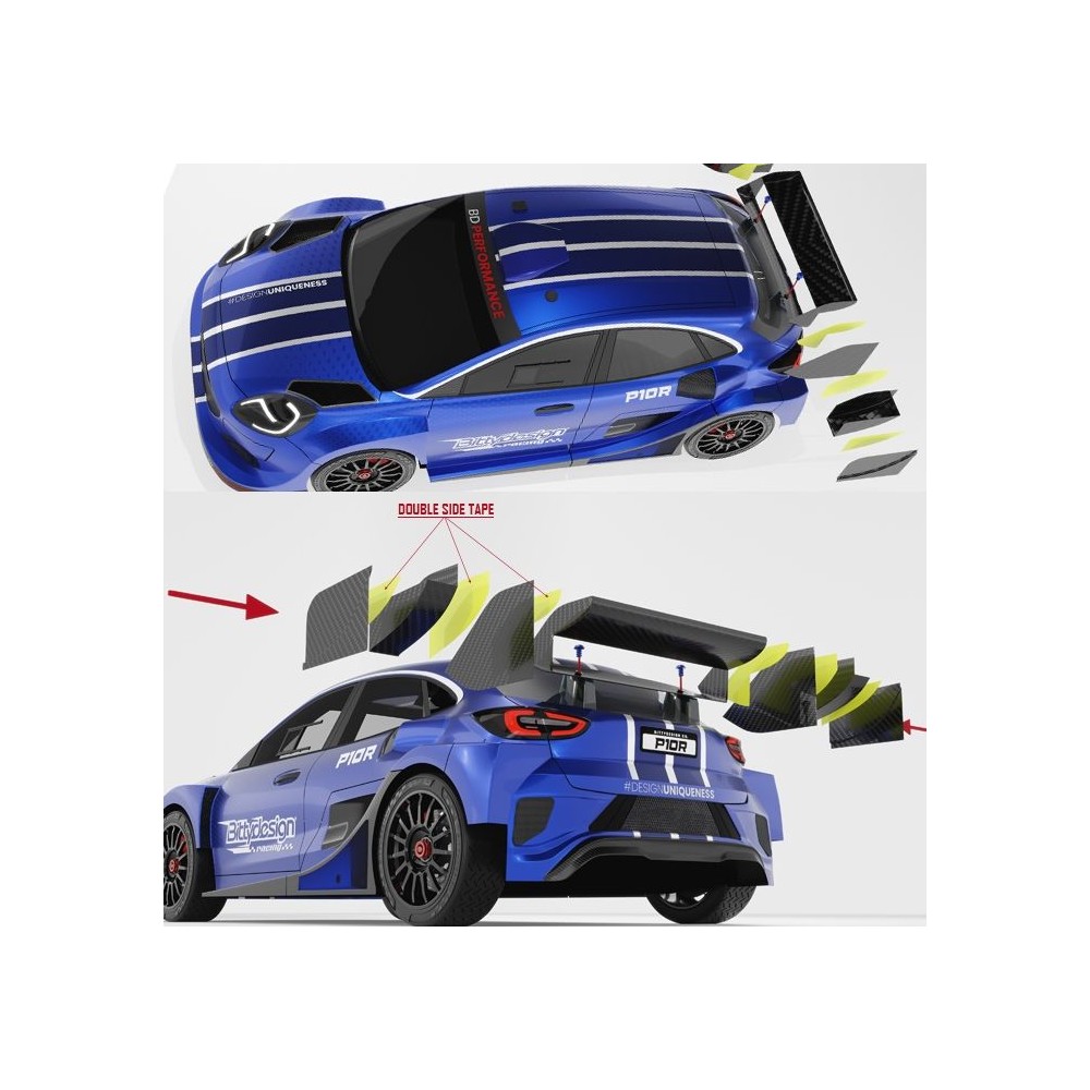 Čirá karoserie pro modely rally v měřítku 1/10 je pokryta ochranou folií, vyrobena z velmi kvalitního polykarbonátu, balení obsahuje samolepky.