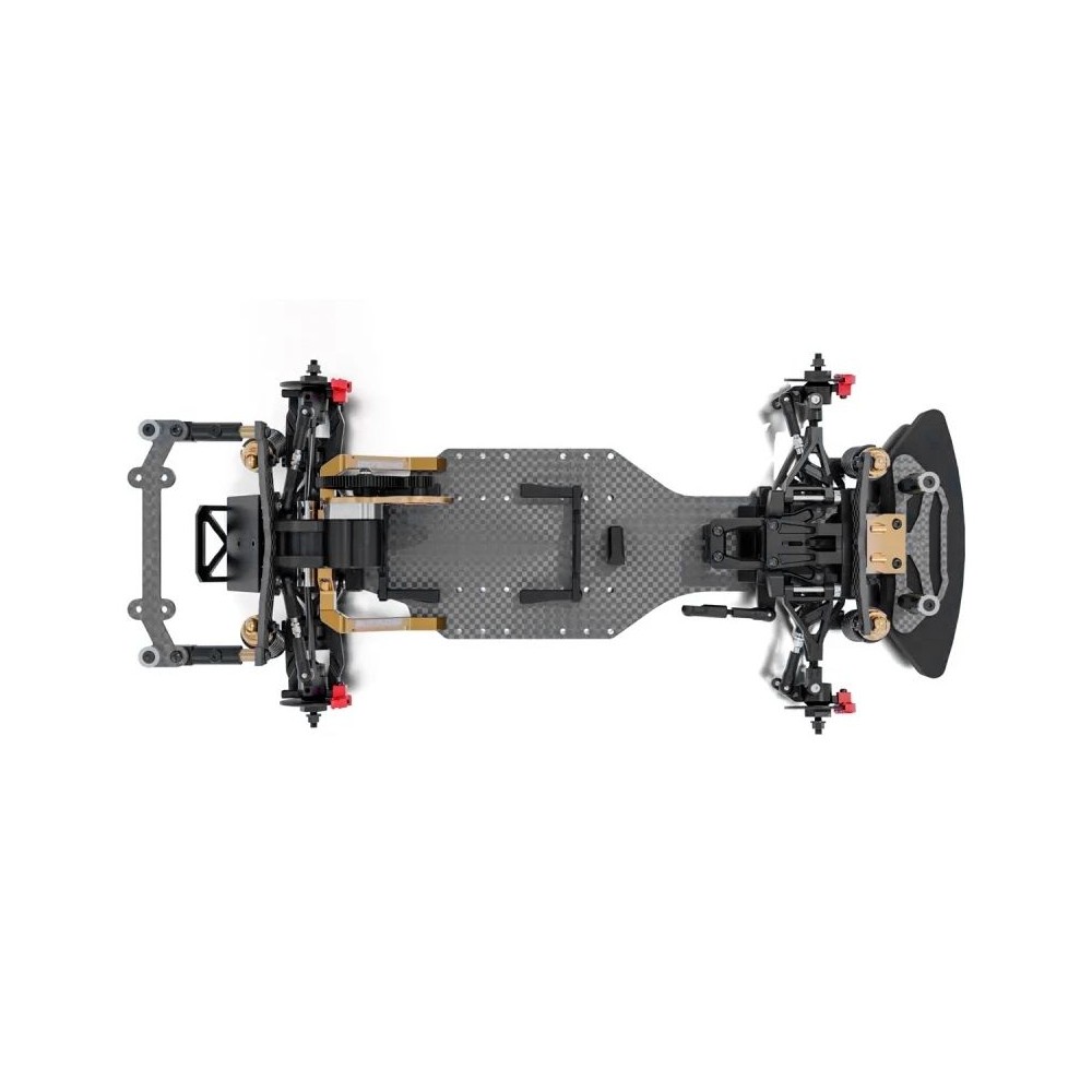 Stavebnice závodního podvozku s pohonem 4x4 a uhlíkovém šasi v měřítku 1/10.