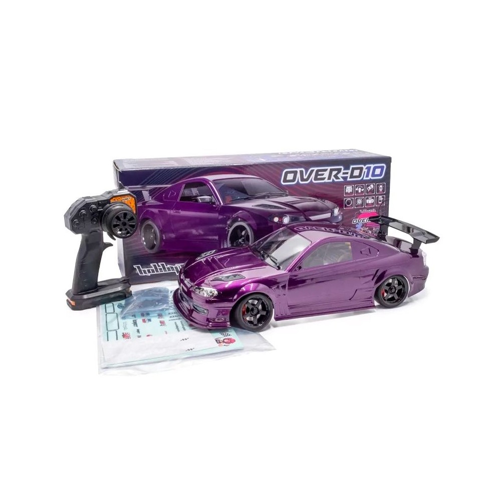 Kompletně sestavený model auta pro 1/10 RC drift. Sada obsahuje RC soupravu, střídavé kombo, nízkoprofilové servo, gyro, nalakovanou karoserii vč, LED osvětlení a kola s driftovacími pneumatikami. Bez pohonného akumulátoru a nabíječe.