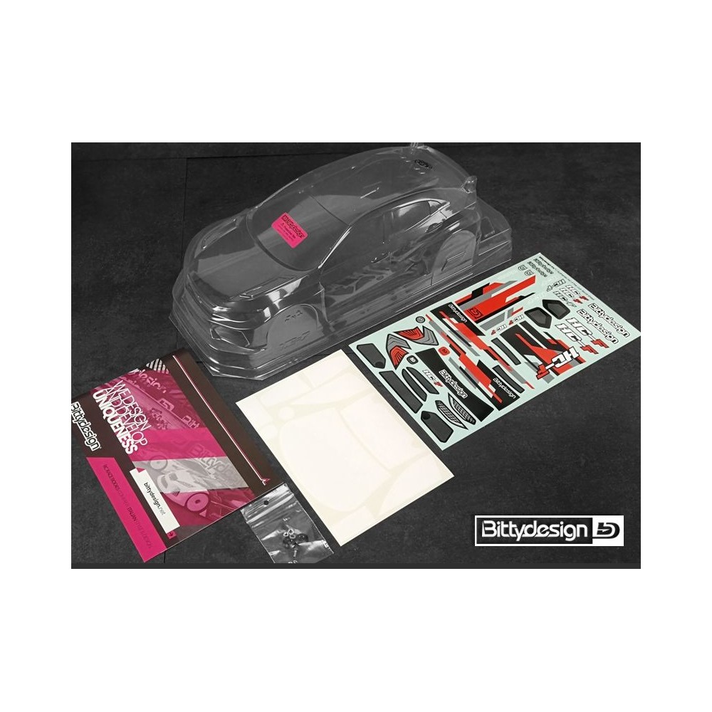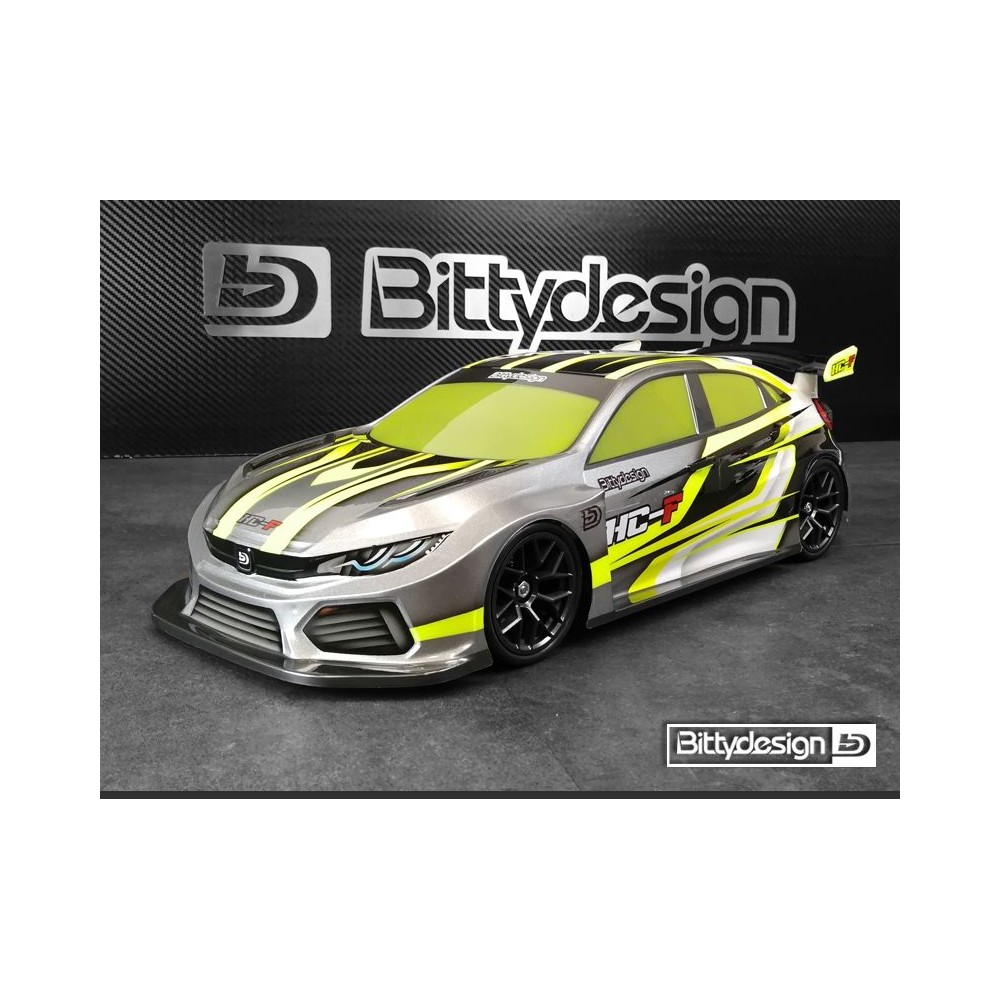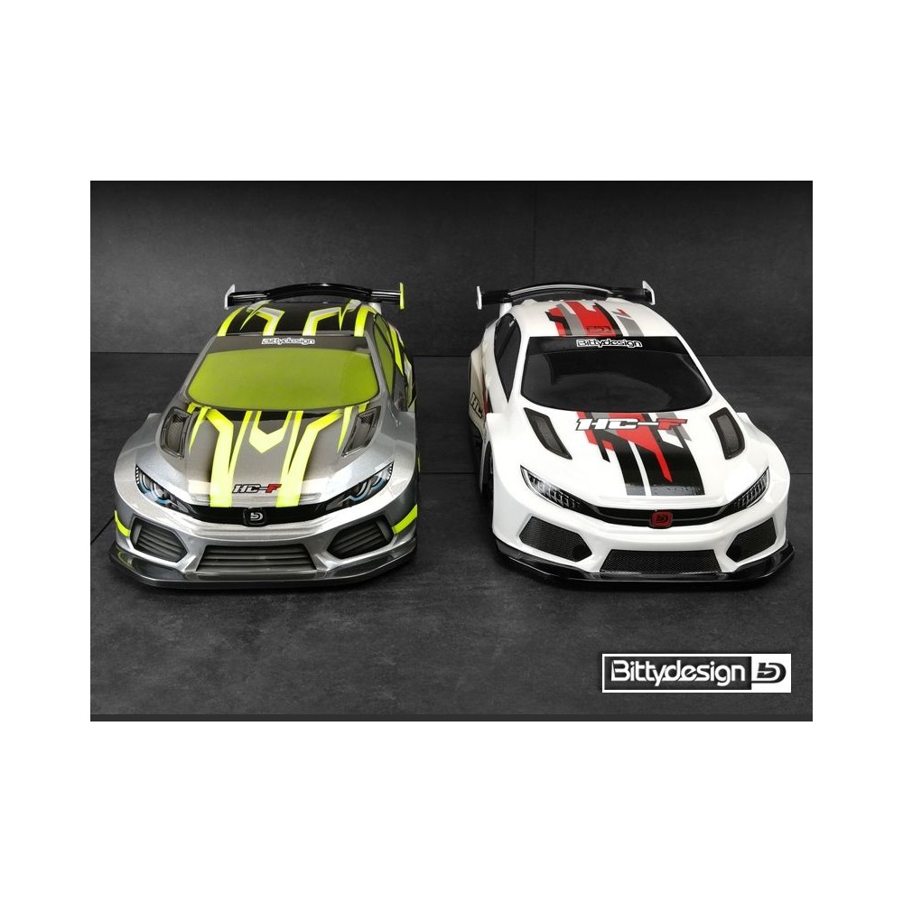 Čirá karoserie pro modely TC s předním náhonem v měřítku 1/10 je pokryta ochranou folií, vyrobena z velmi kvalitního polykarbonátu, balení obsahuje samolepky.