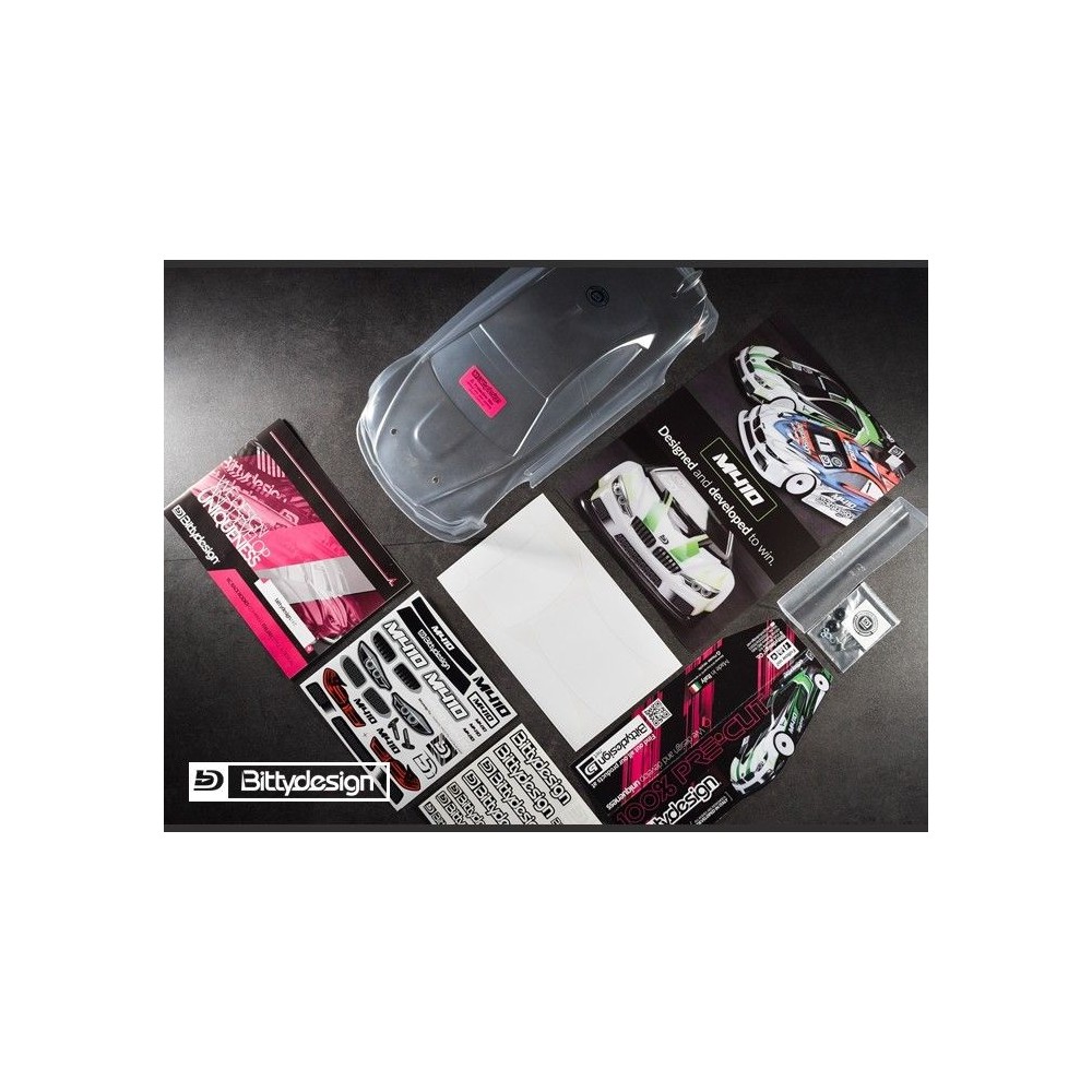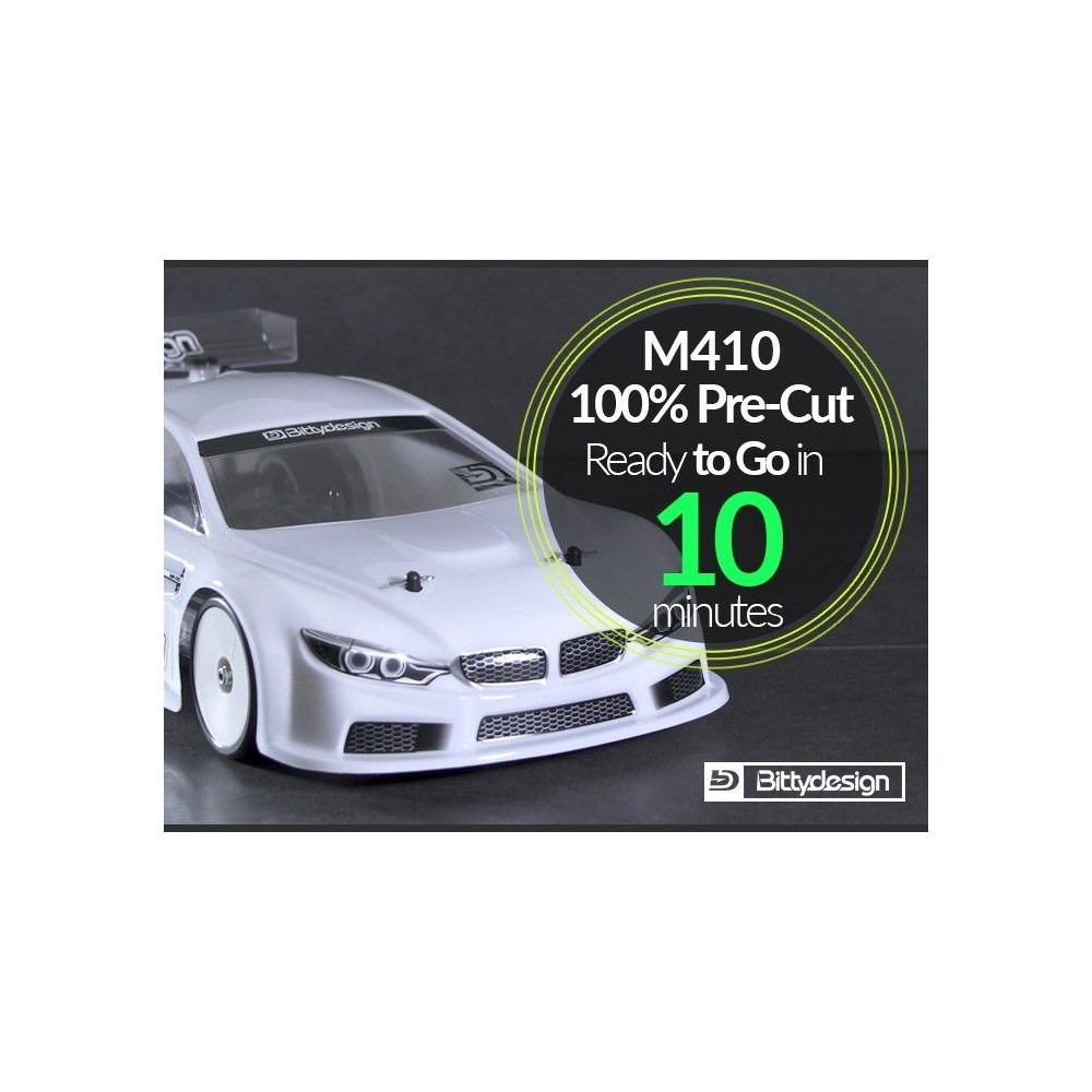 Karoserie čirá Bittydesign M410 - (190 mm) - lehká - předsekaná pro XRAY T4 17 a 18