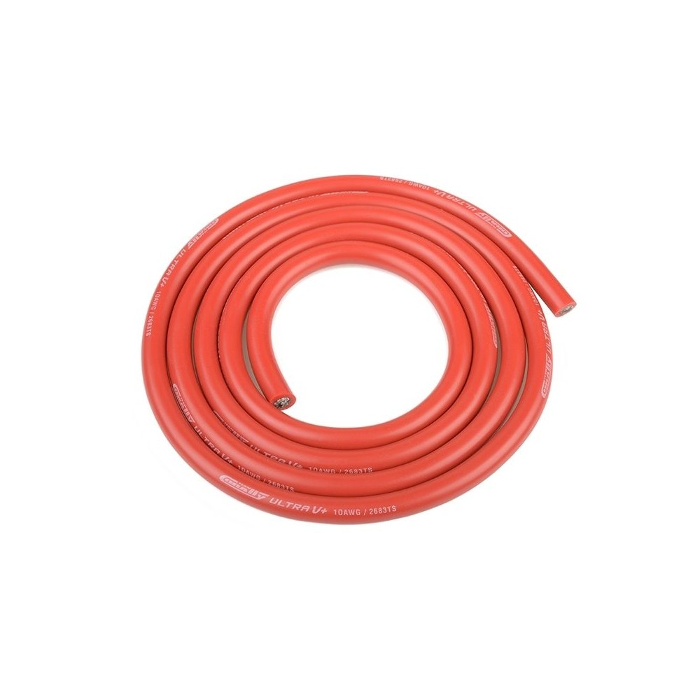 Silikonový kabel Super Flex 10AWG (5.26 mm2) se silikonovou izolací v červené barvě. Je složen z 2683 drátků o průměru je pouze 0,05 mm. Proto je kabel extrémně ohebný. Vnější průměr 5.26 mm, délka 1 m.Kabel má menší odpor, protože mezi drátky jsou menší vzduchové mezery. Drátky jsou pocínovány pro zamezení oxidace a v neposlední řadě pro snadné pájení. Vyrobeno v MADE IN GERMANY