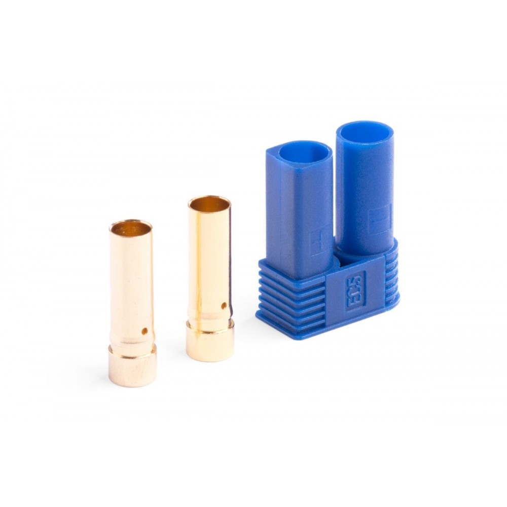 Dvoukolíkový silový konektor se zlacenými 5mm kolíčkovými kontakty se zatížitelností max. 90 A (dlouhodobě 25A). Pro kabely o průřezu max. 5,3 mm2 (10AWG). Přechodový odpor 0,40 mOhm, max. 500 V. Balení 2 kontakty-dutinky a pouzdro.